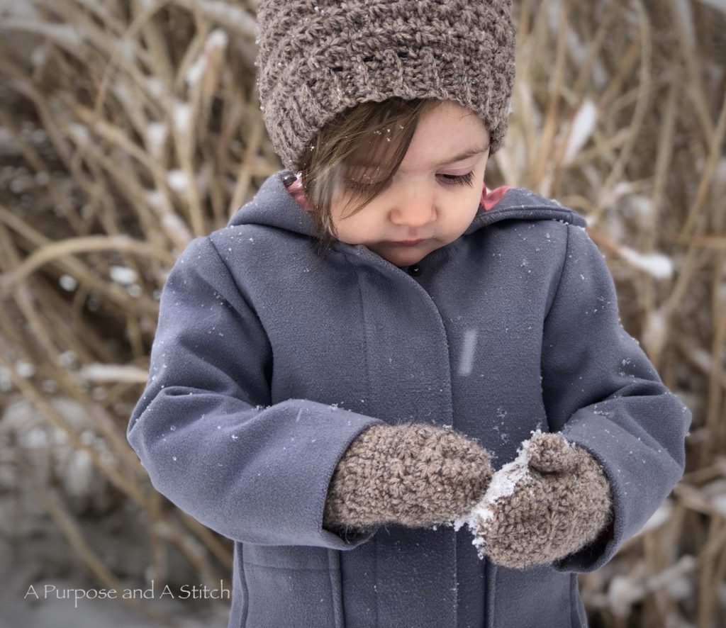 This is her first Winter that she is old enough to experience snow in all of its cold, wet goodness and I just couldn’t wait for her to be able to play in it. The only things holding her back were the subzero temps and not having mittens to protect her little hands. So I set to work.