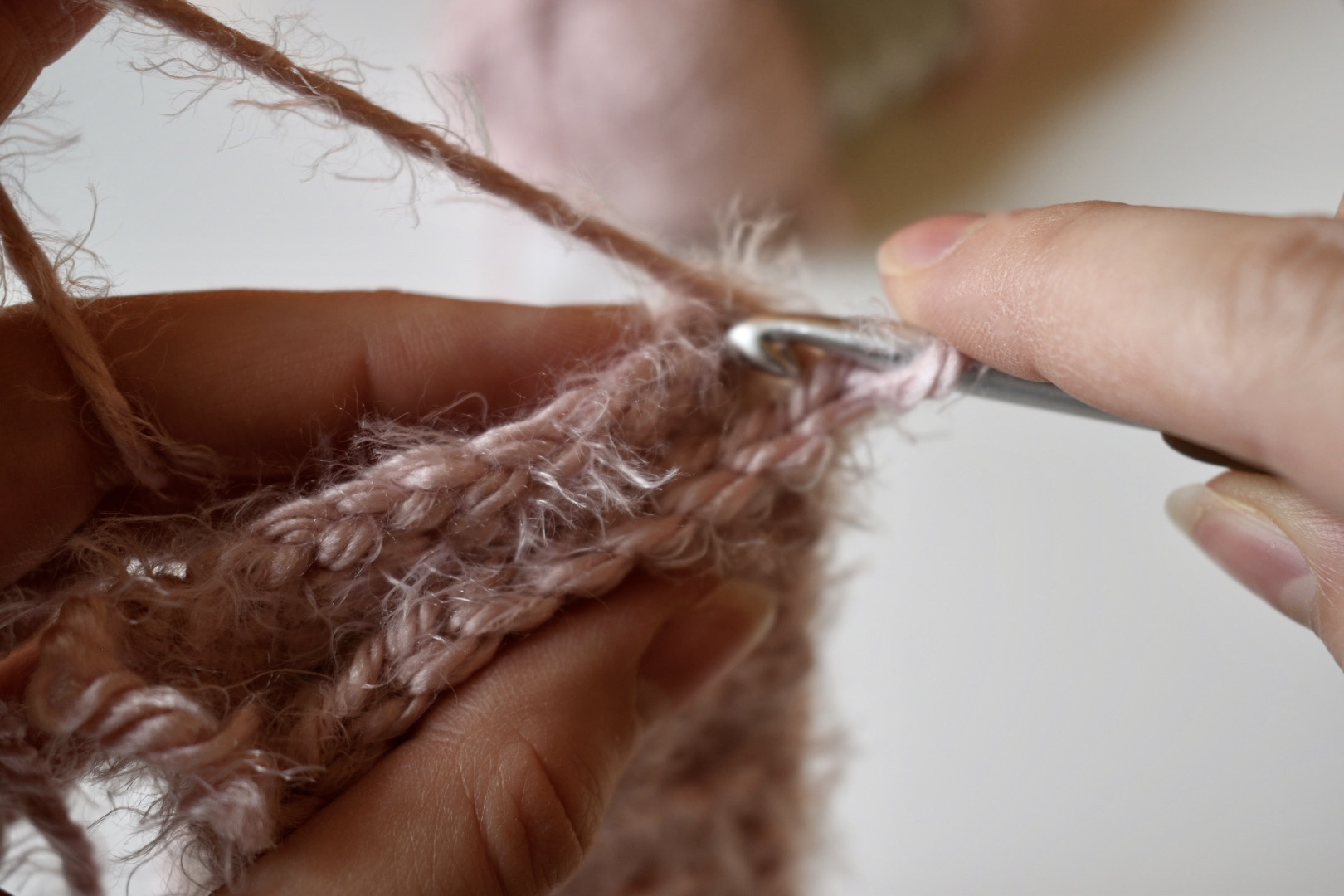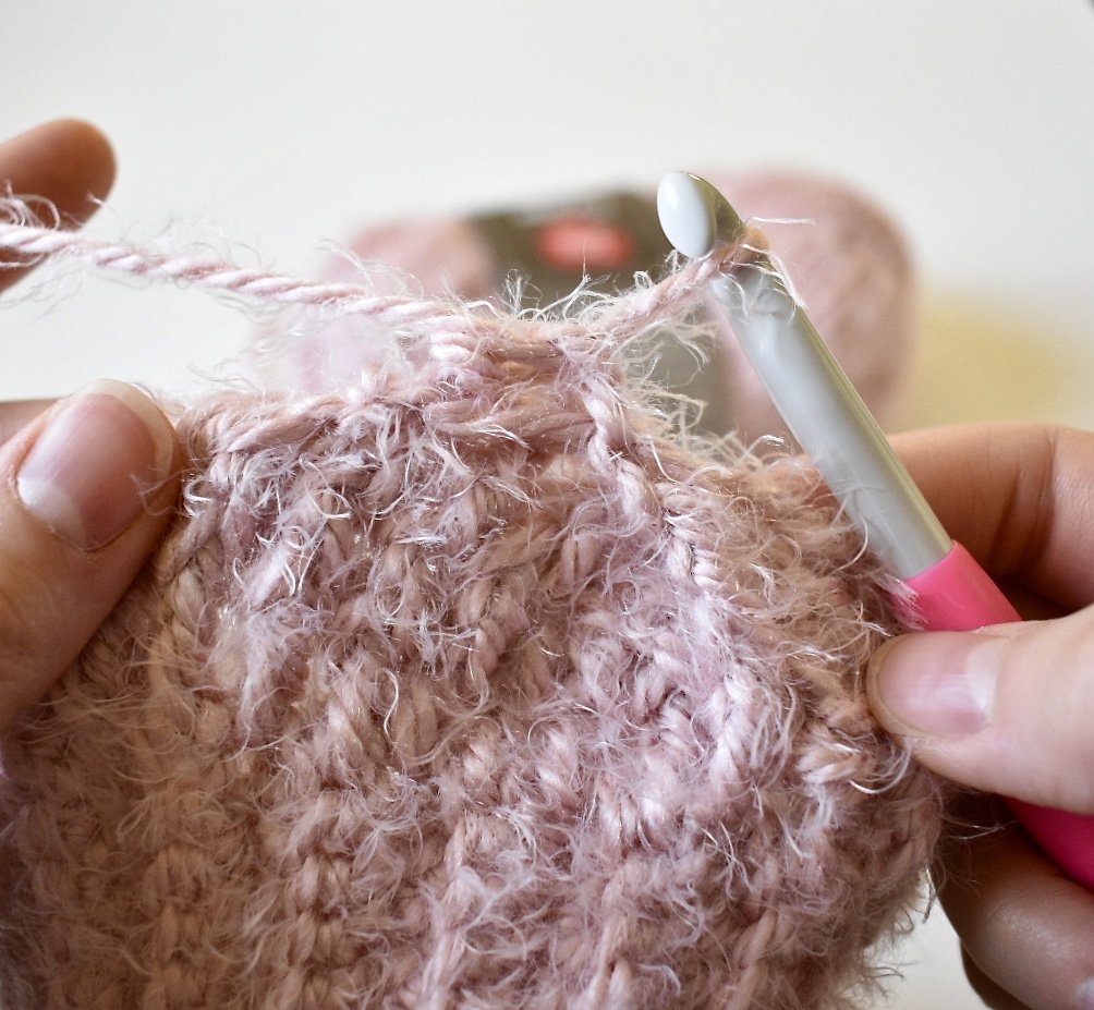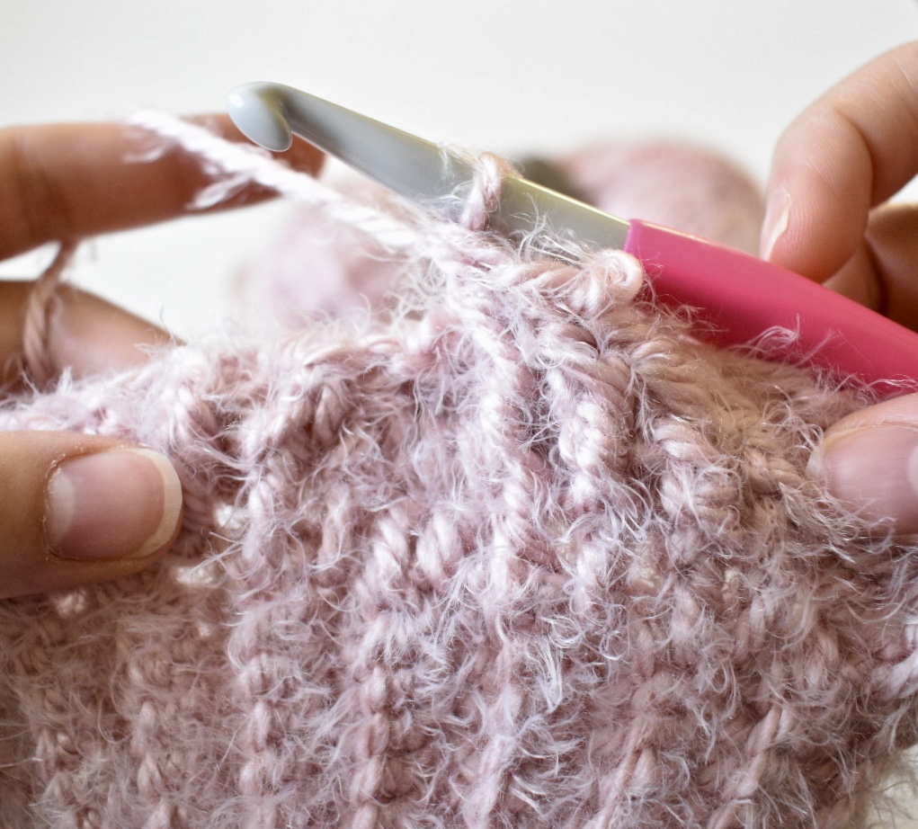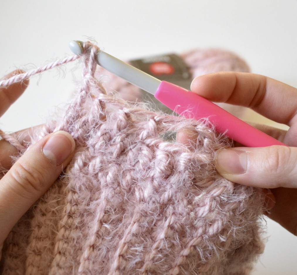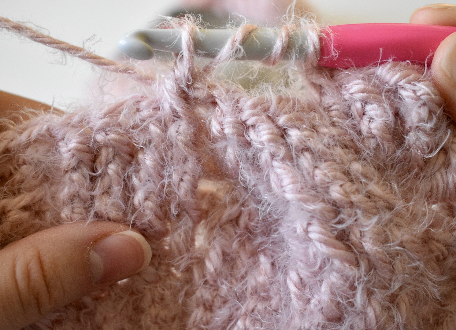 Working the back post double crochets is similar, but you will be working behind your work rather than in front of it. You will insert your hook around the post from back to front to back again and continue with the double crochet as normal.