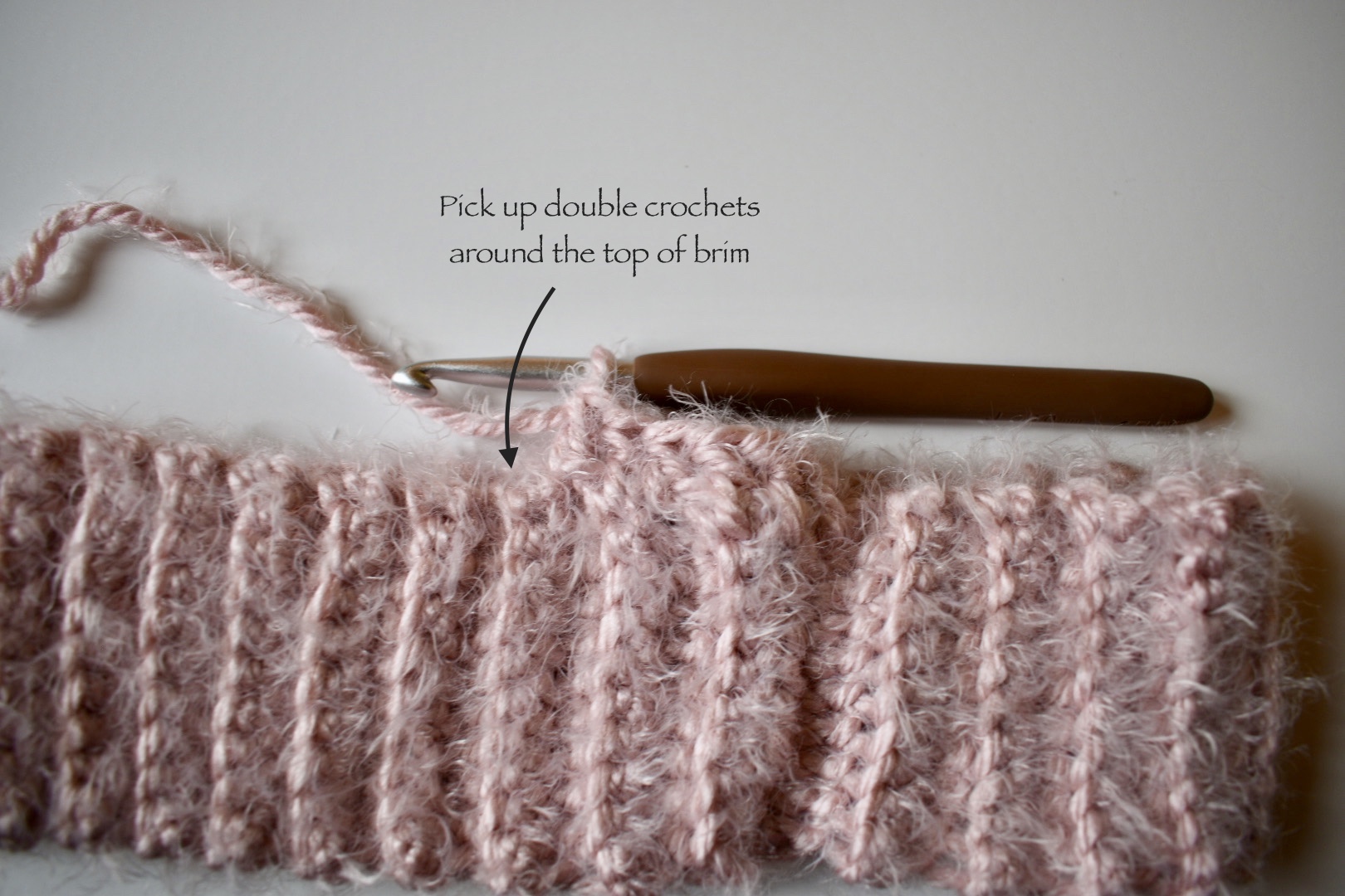 To begin, you will start out with the brim of the hat. You’ll work this by single crocheting into the back loops only of each stitch across for each row. The amount of rows worked can be adjusted to fit a smaller or larger head as needed, and remember that it will stretch!