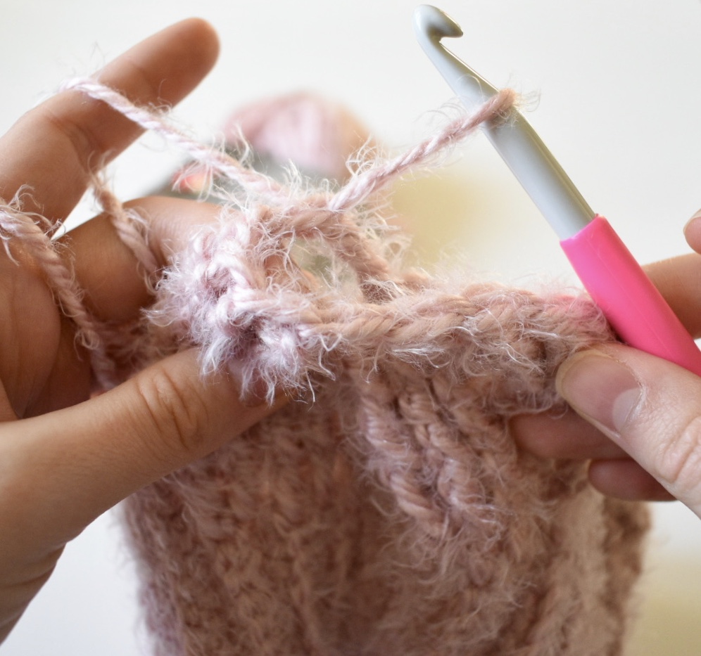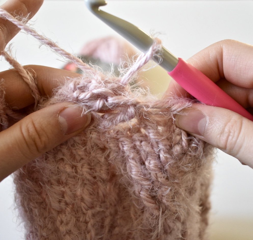 It can be a little tricky to keep both your yarn overs on the hook while doing this, and your tension is bound to be looser than usual, but that’s okay. You’ll get the hang of it quickly and once you do, you’ll be able to breeze through this beanie!