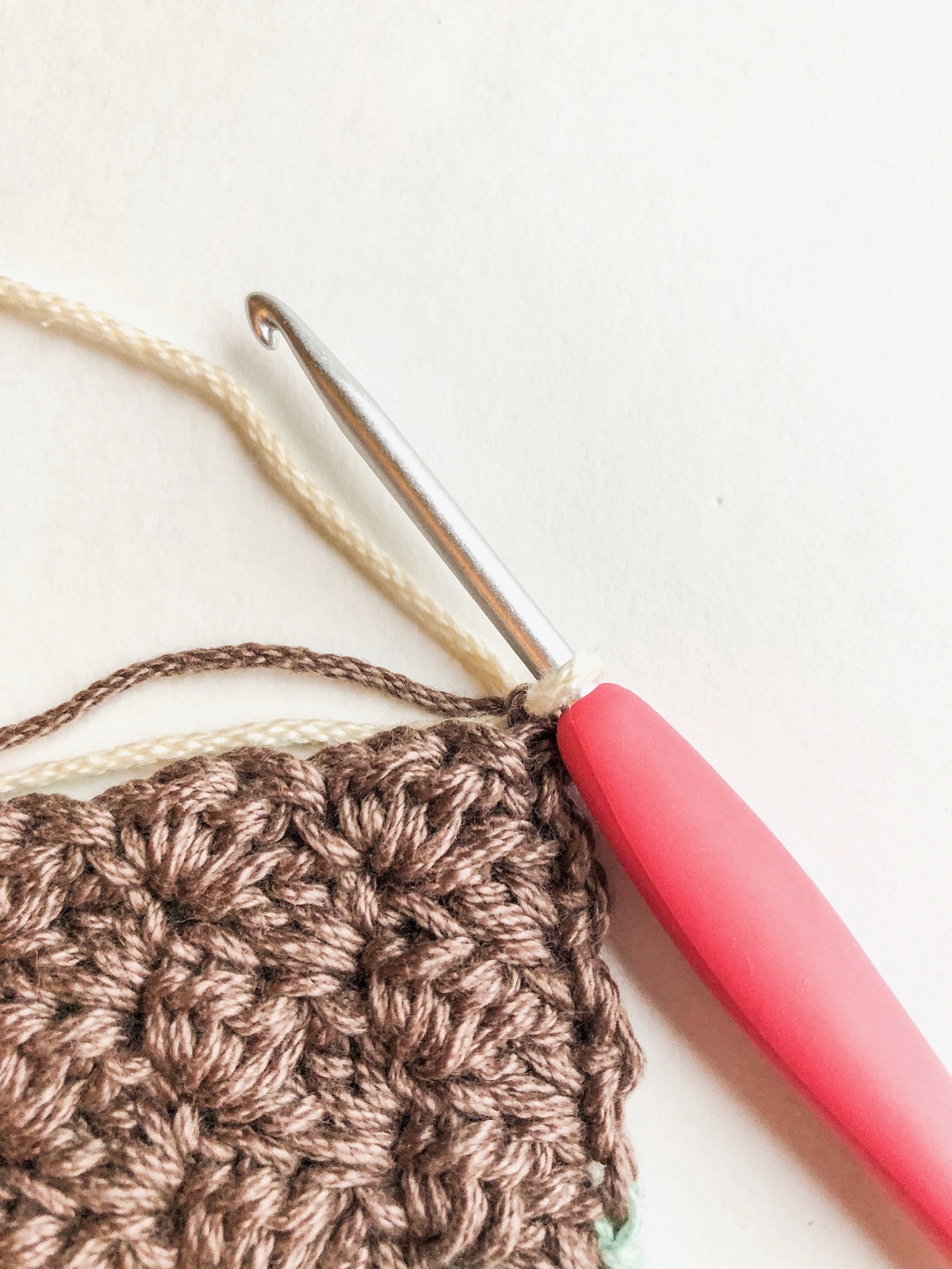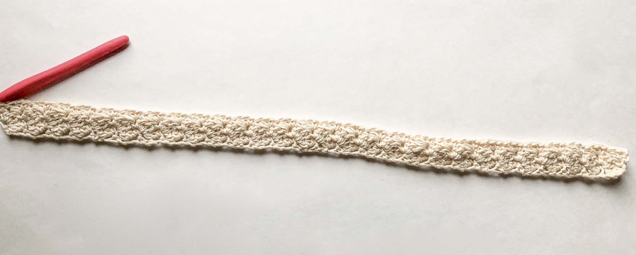This entire pattern is worked in the sedge stitch, with a few color changes across the first and last few rows, while the main body is made up completely of the same color (I used cream for a nice neutral look)