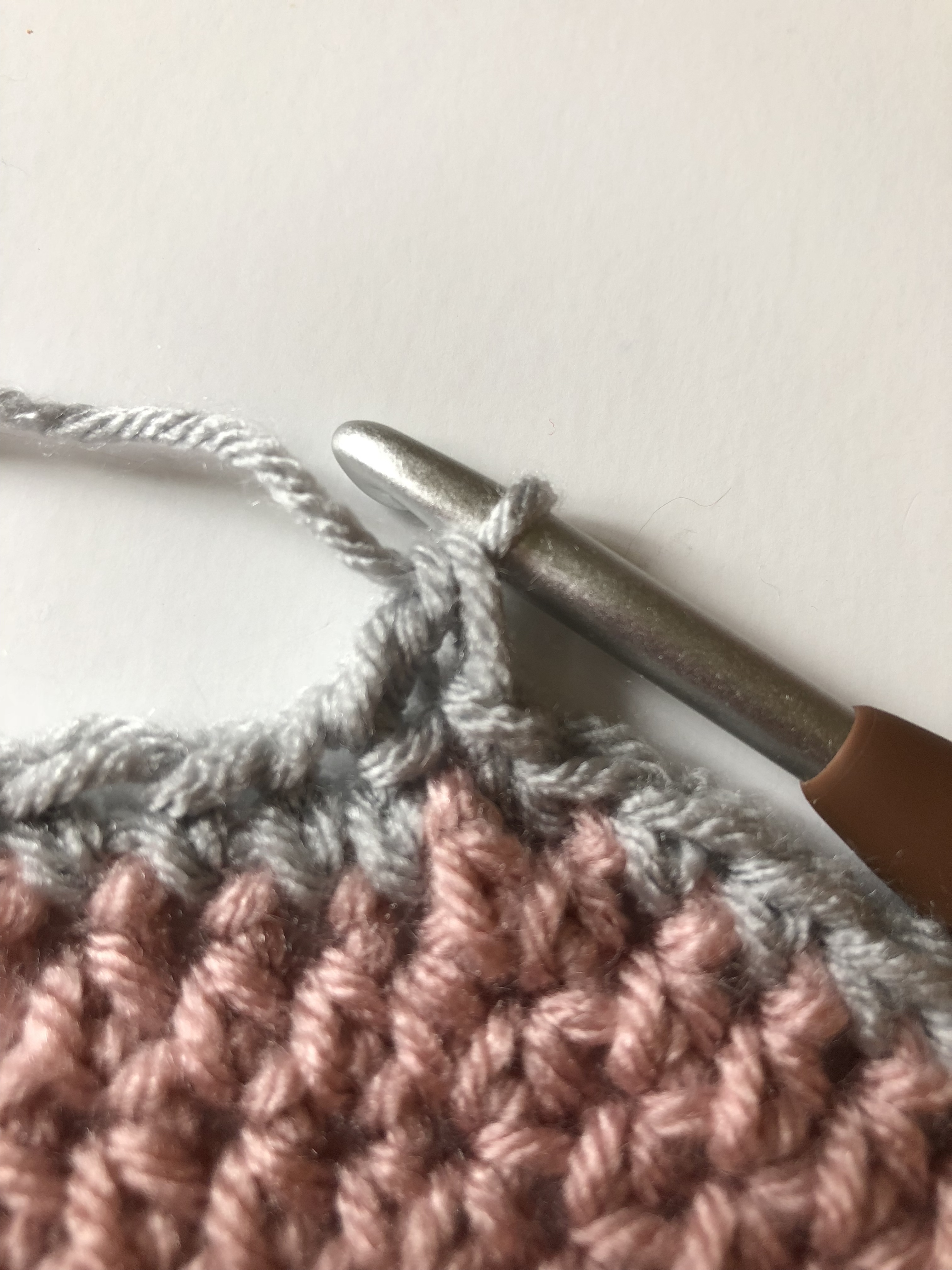 Hi and congratulations for your patterns. I an working on Ellie’s pattern and I would like to ask if I have to change crochet hook when I will attach the gray colour in the blanket.