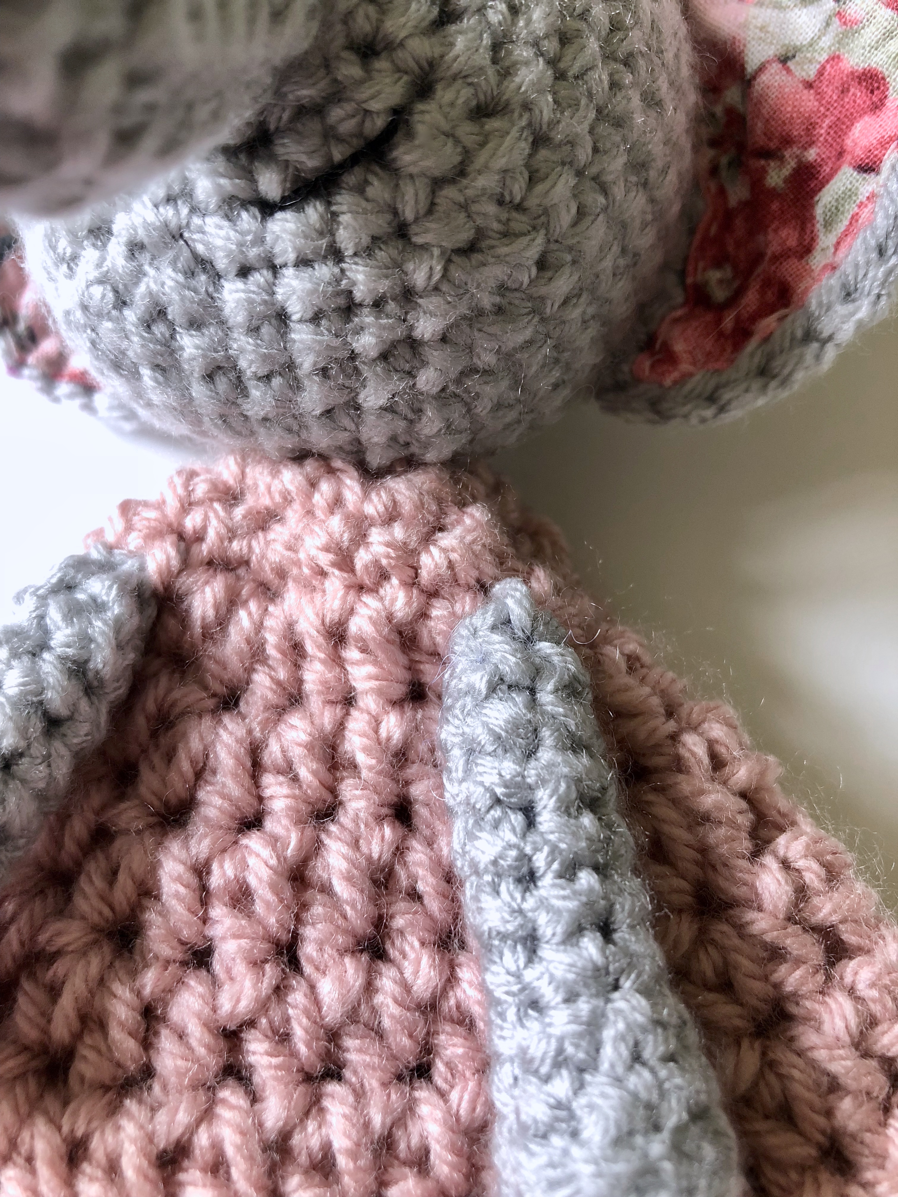 When I shared the link to that pattern on Facebook I was overwhelmed with the love and adoration she received. I was also asked if I had any elephant lovey patterns and was sad to say that I did not. However, I absolutely loved the idea.