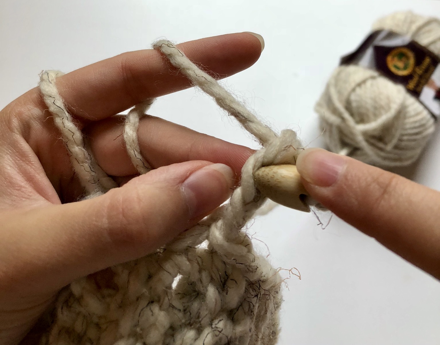 You will now pull up 2 more loops by inserting your hook into the next two single crochet stitches, giving you a total of 6 loops on your hook.