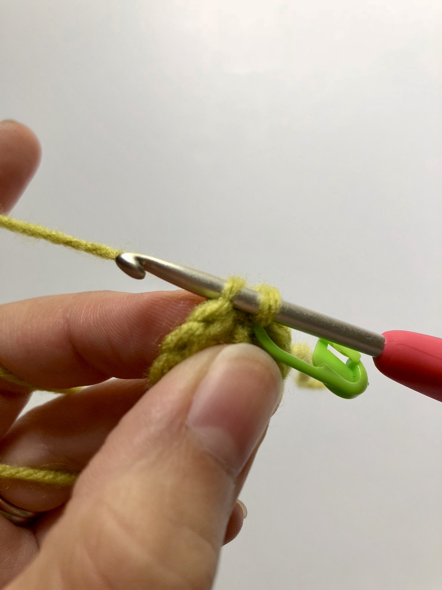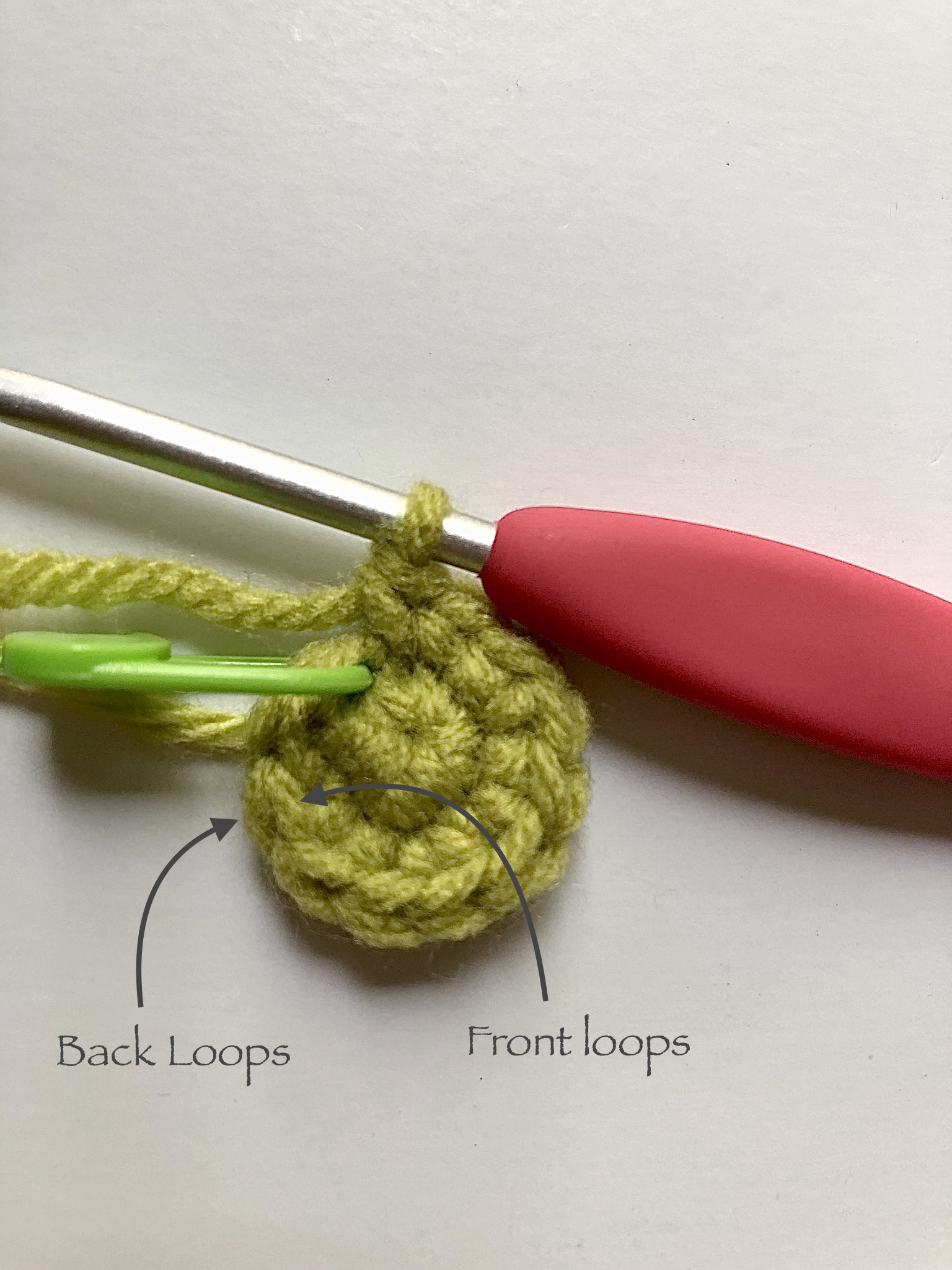 Second, if you are not going to use a stitch marker, make sure you can read your stitches well. If you were to accidentally count your slip stitch or your chain 1 as a stitch, you would be adding an additional stitch to each round. Since I like to watch TV while I crochet, I used a stitch marker to keep things simple.
