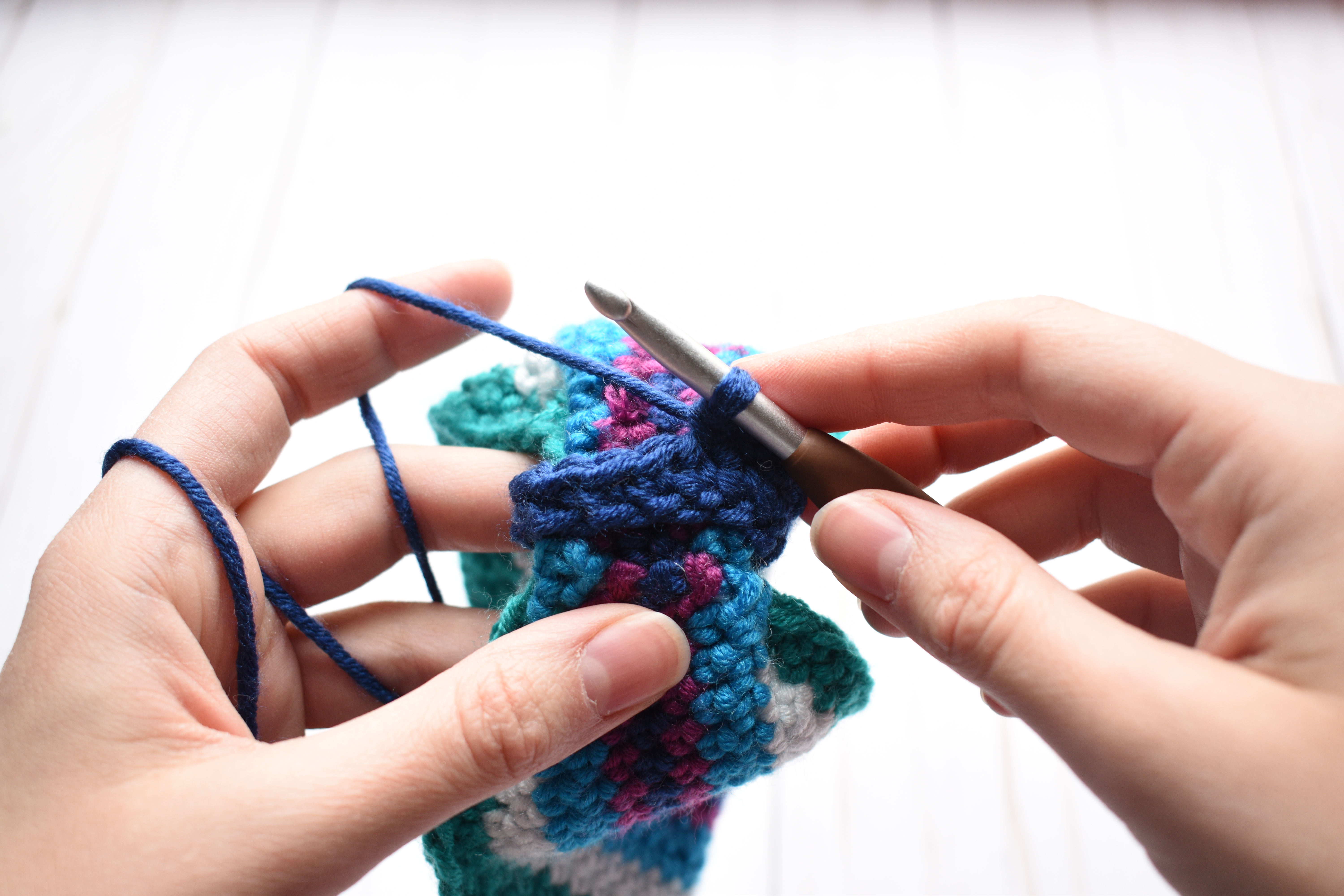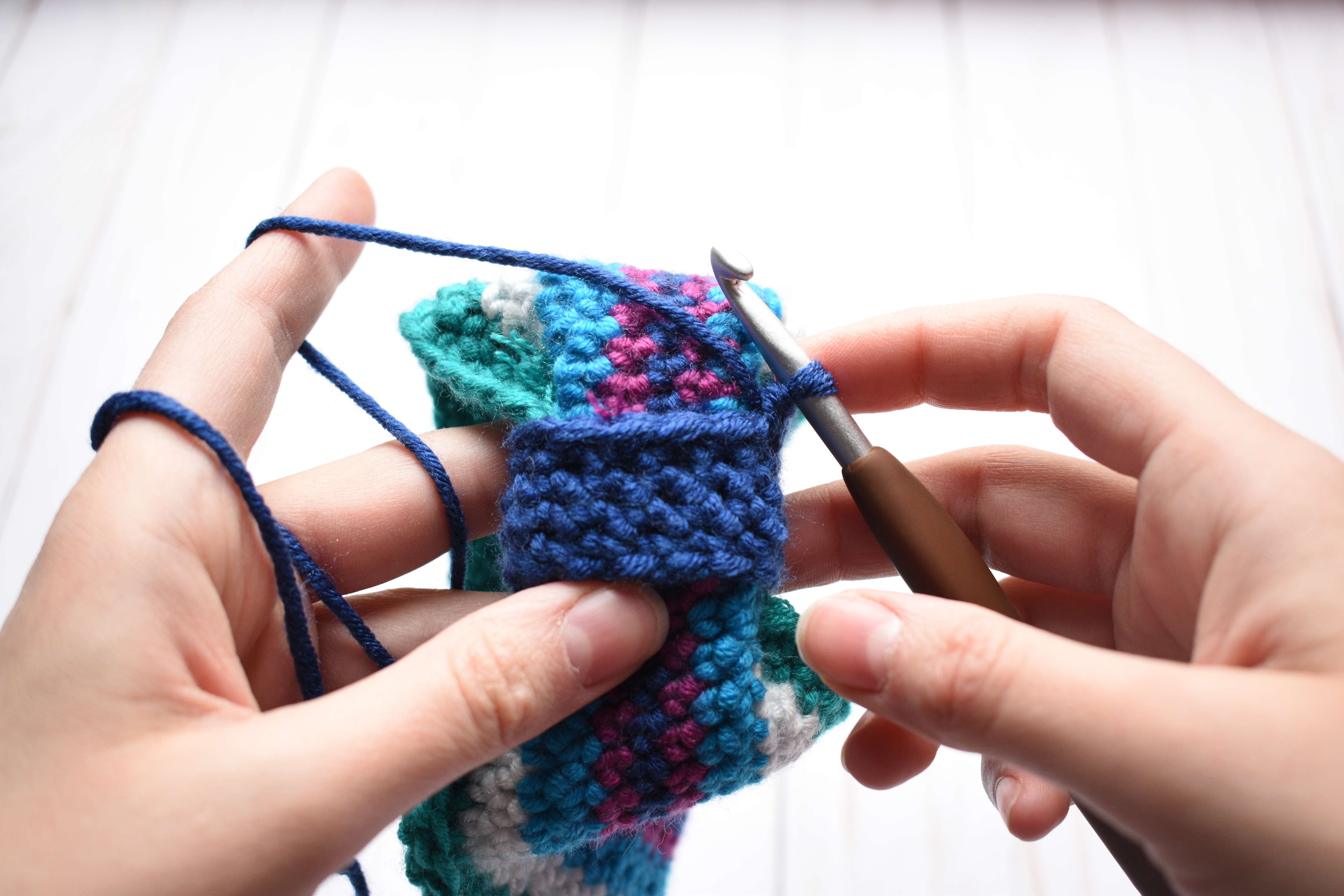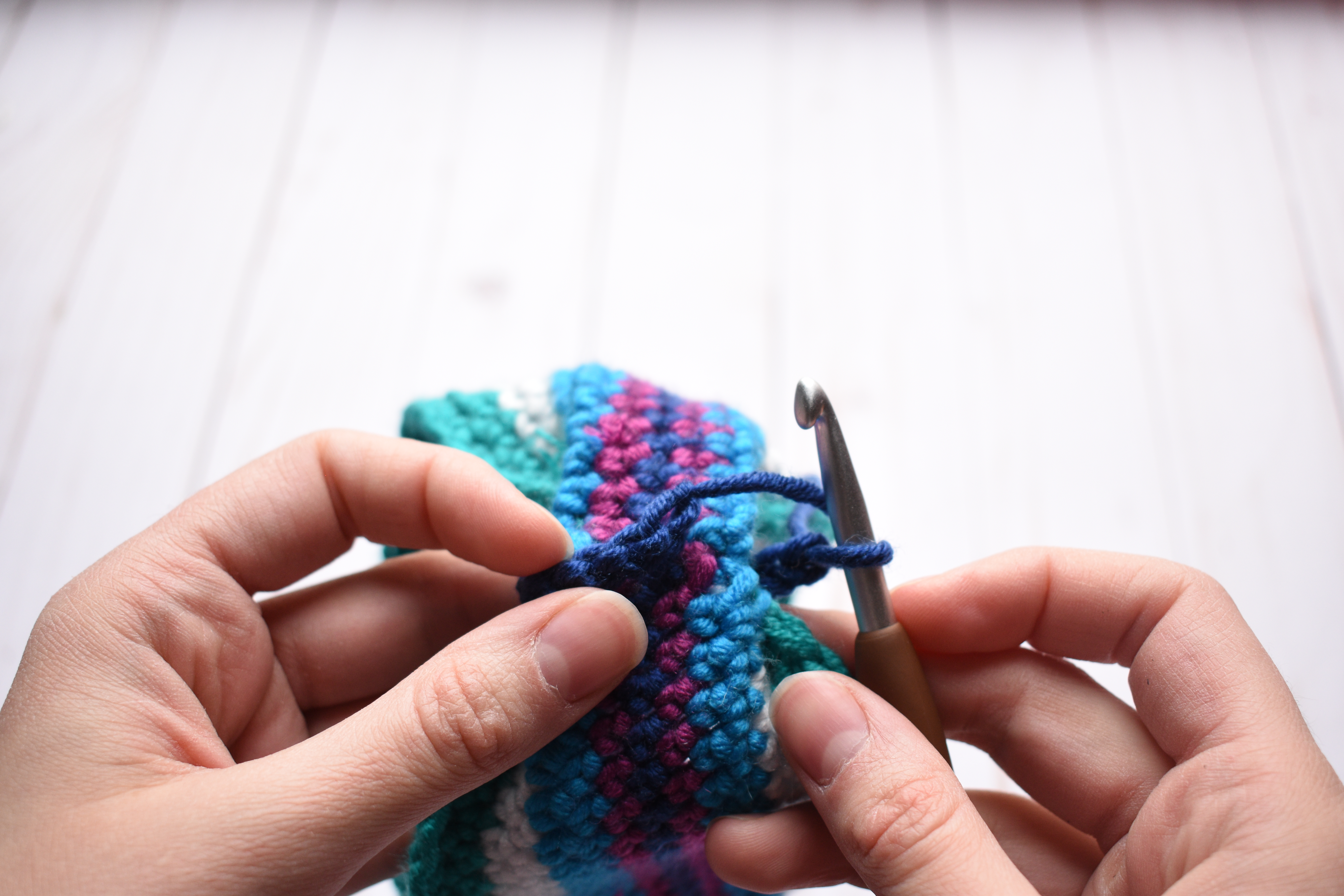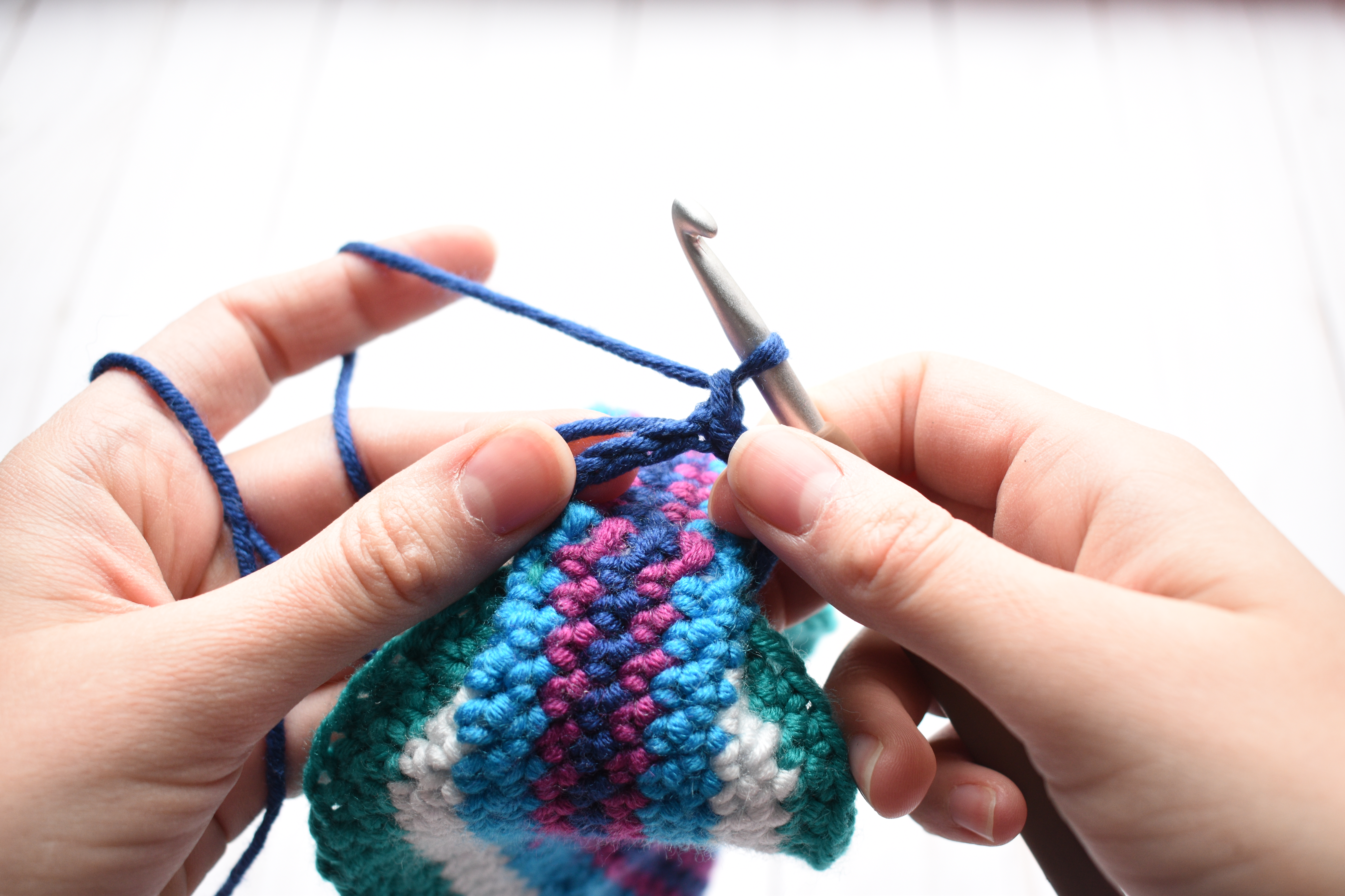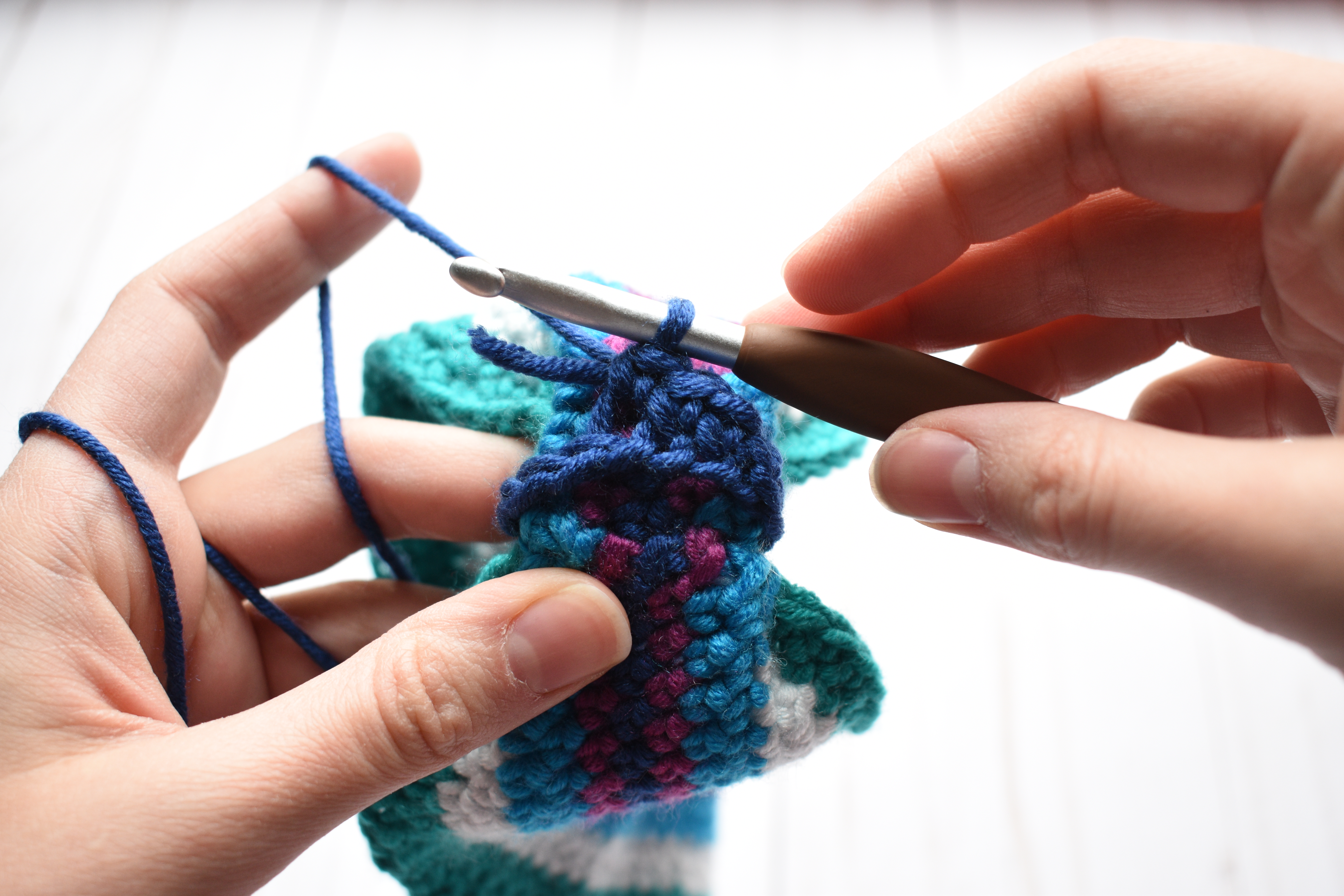 Repeat with the 4th color, but only work 1 round in this color.