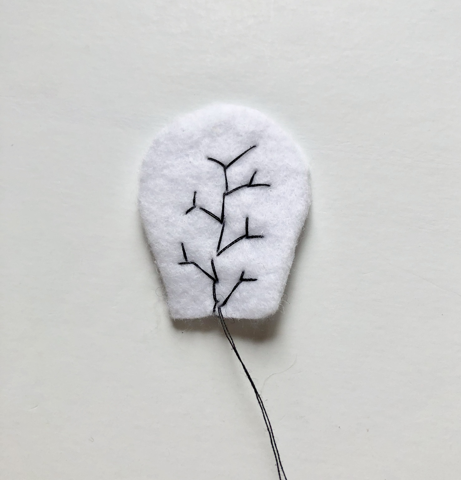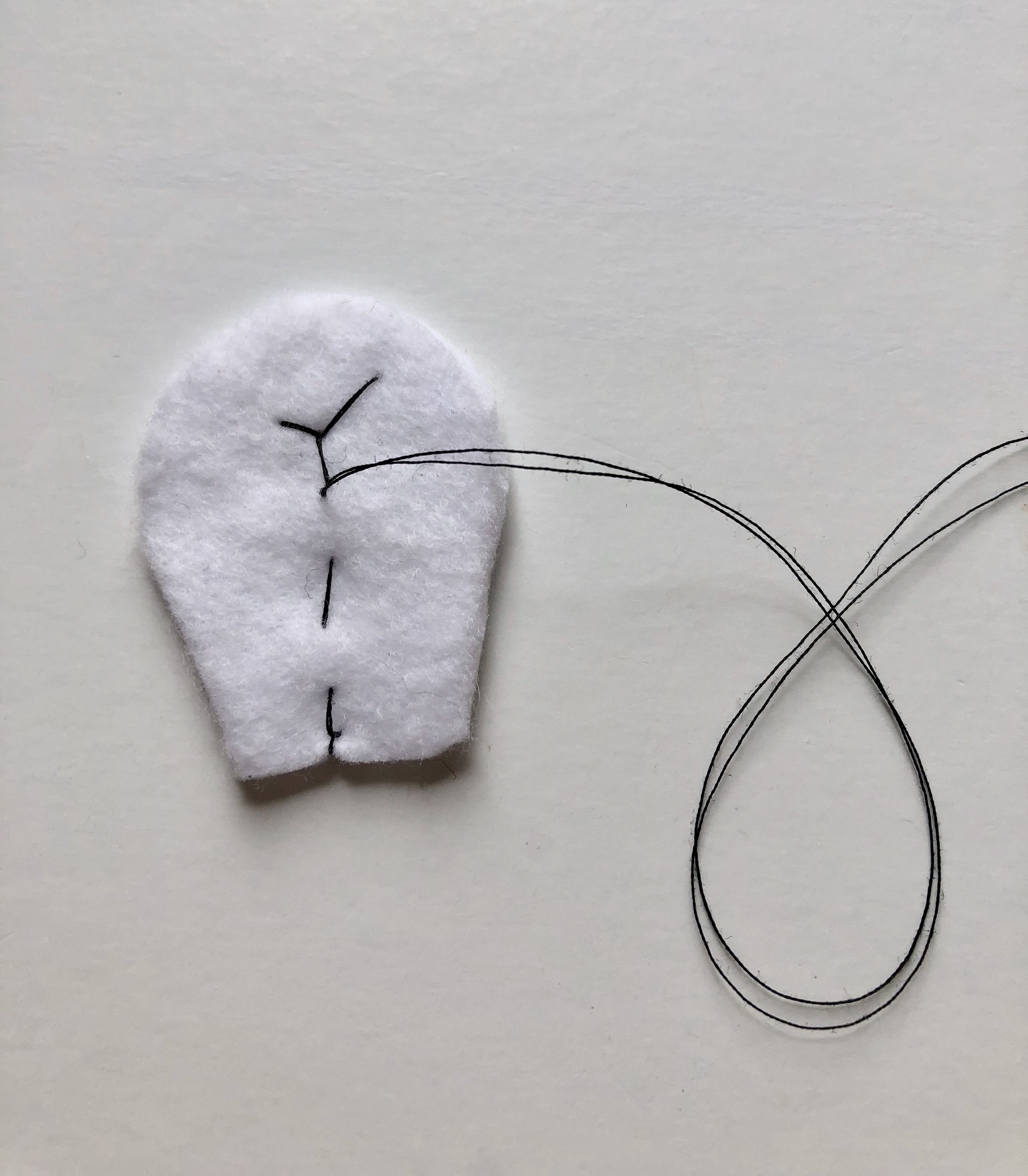 To give more detail to the bee, I used black thread and a needle to embroider on some veins before attaching to the bee’s body. There’s no real science to this, just work up the center with some branches coming out of the center line.