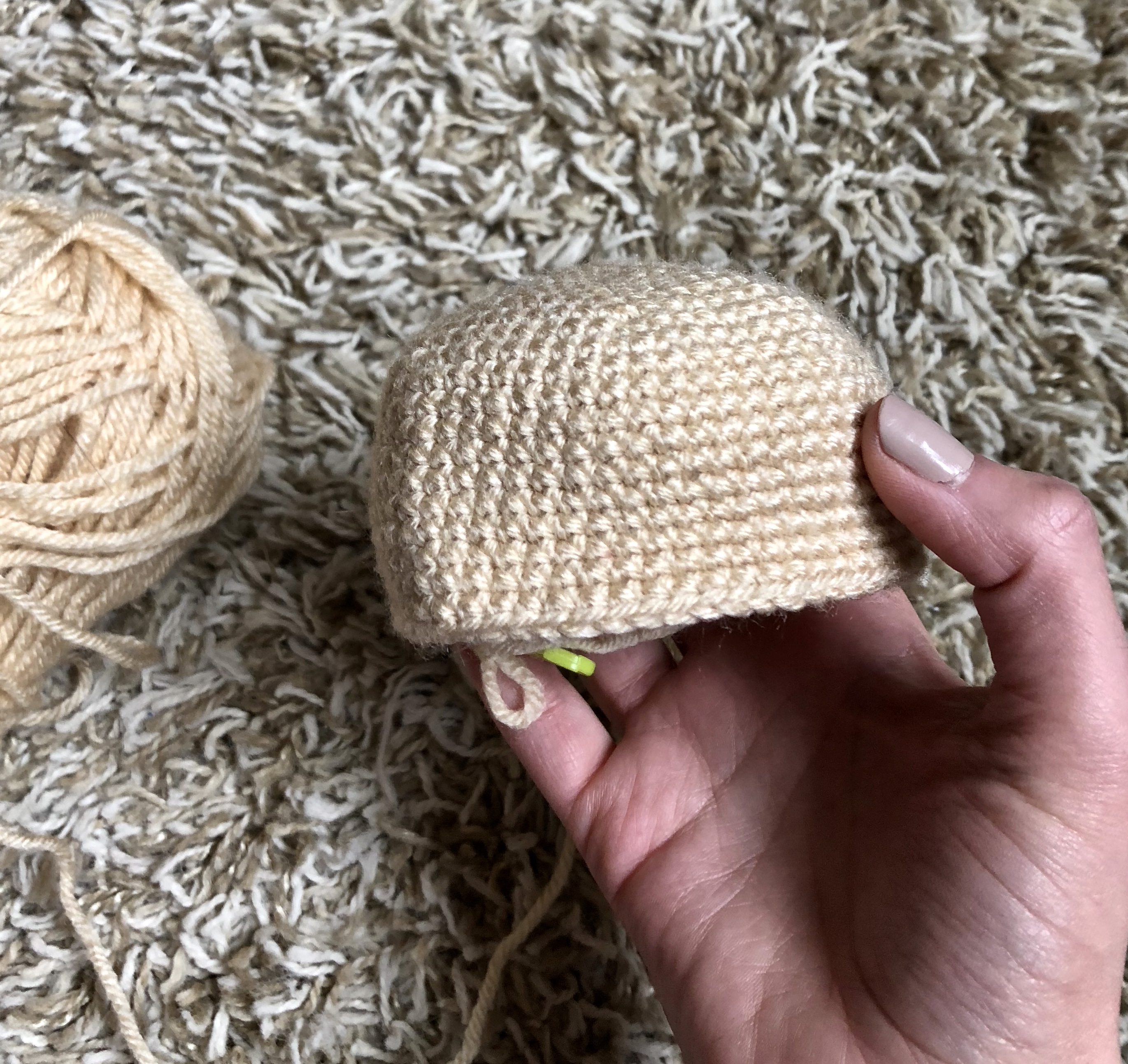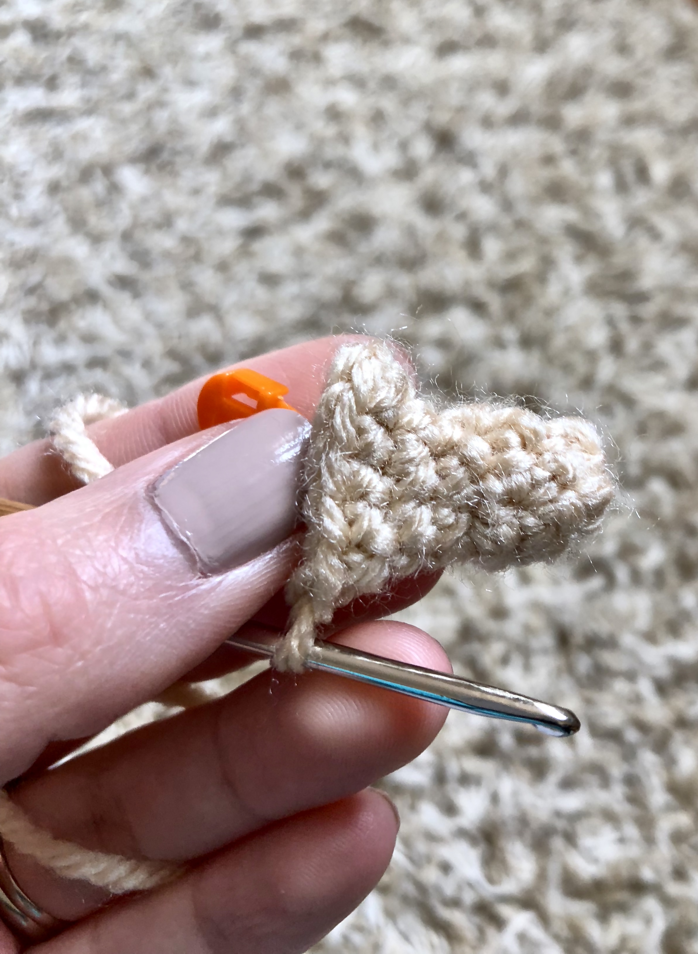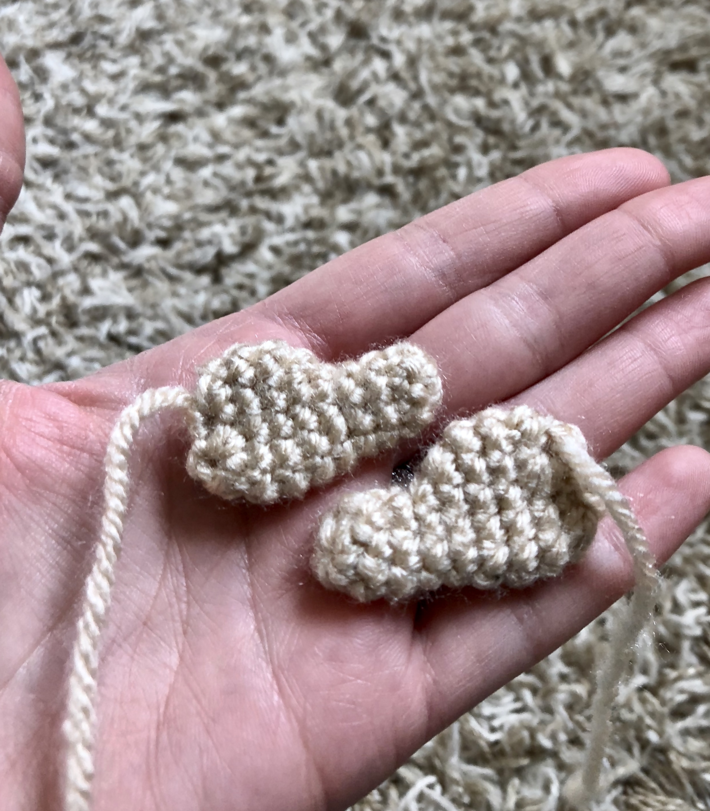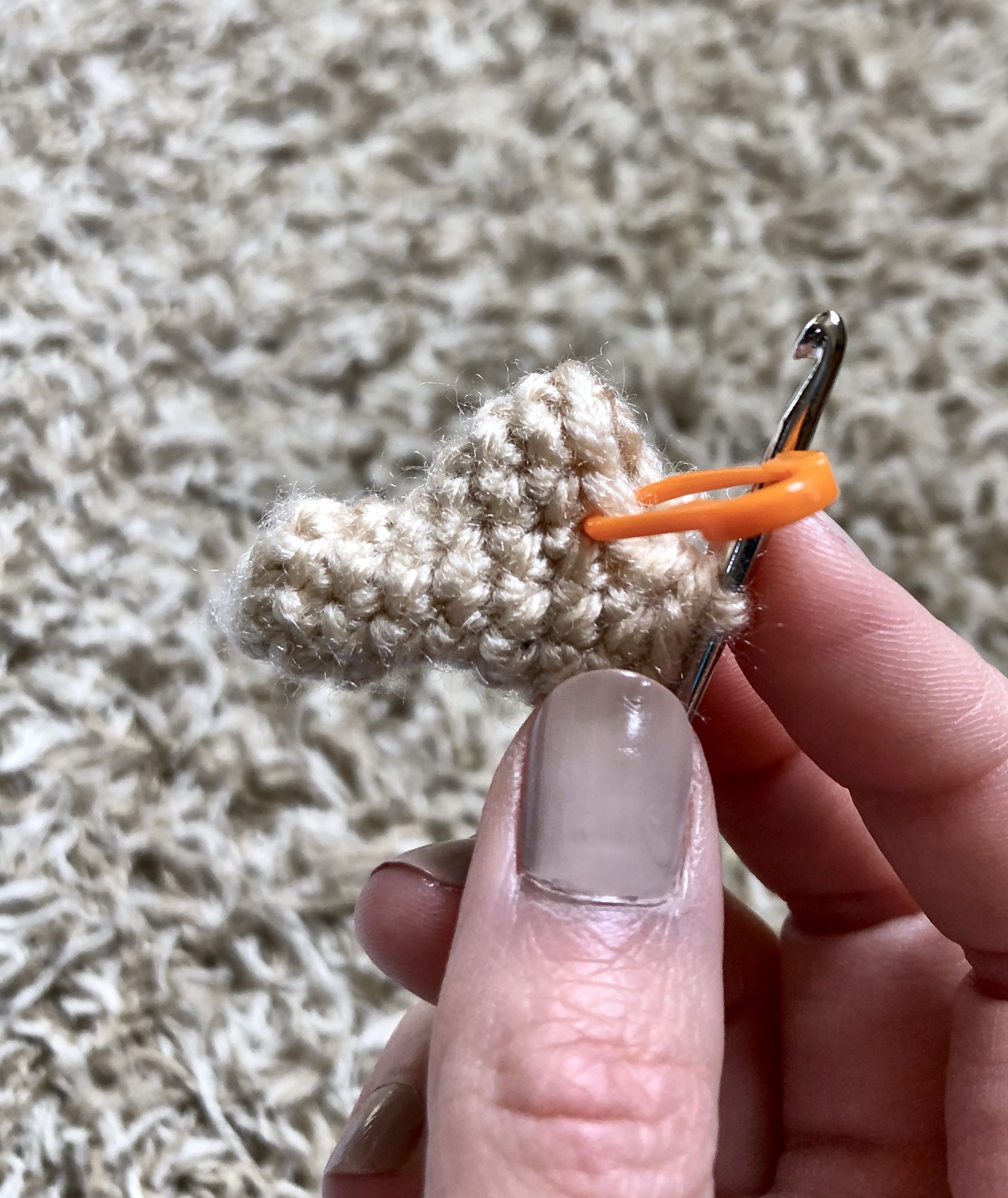 From here you will make your ears. Those are just a few rows high with slow increases to create a half circle.