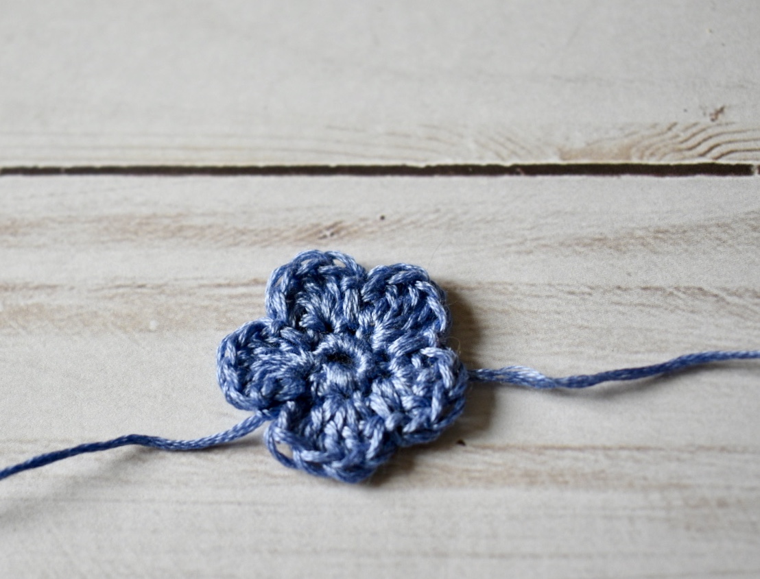 The flowers and leaves are all made out of embroidery floss and a smaller hook (I used a 2.75 mm hook). I made 3 different patterns, but they’re all worked fairly similar to one another.