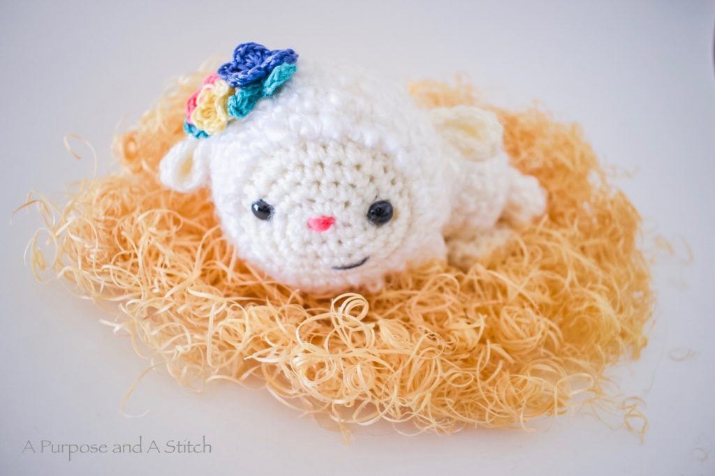 I hope you all enjoy this classic take on a lamb laying down, with extra spring pizzaz from the floral bouquet on her head!