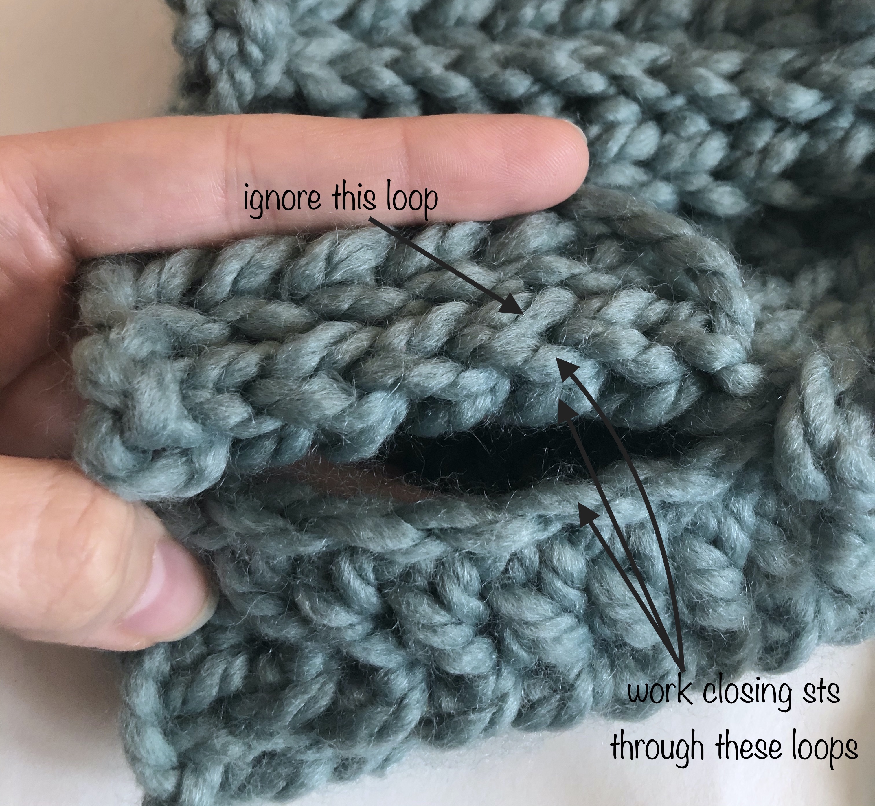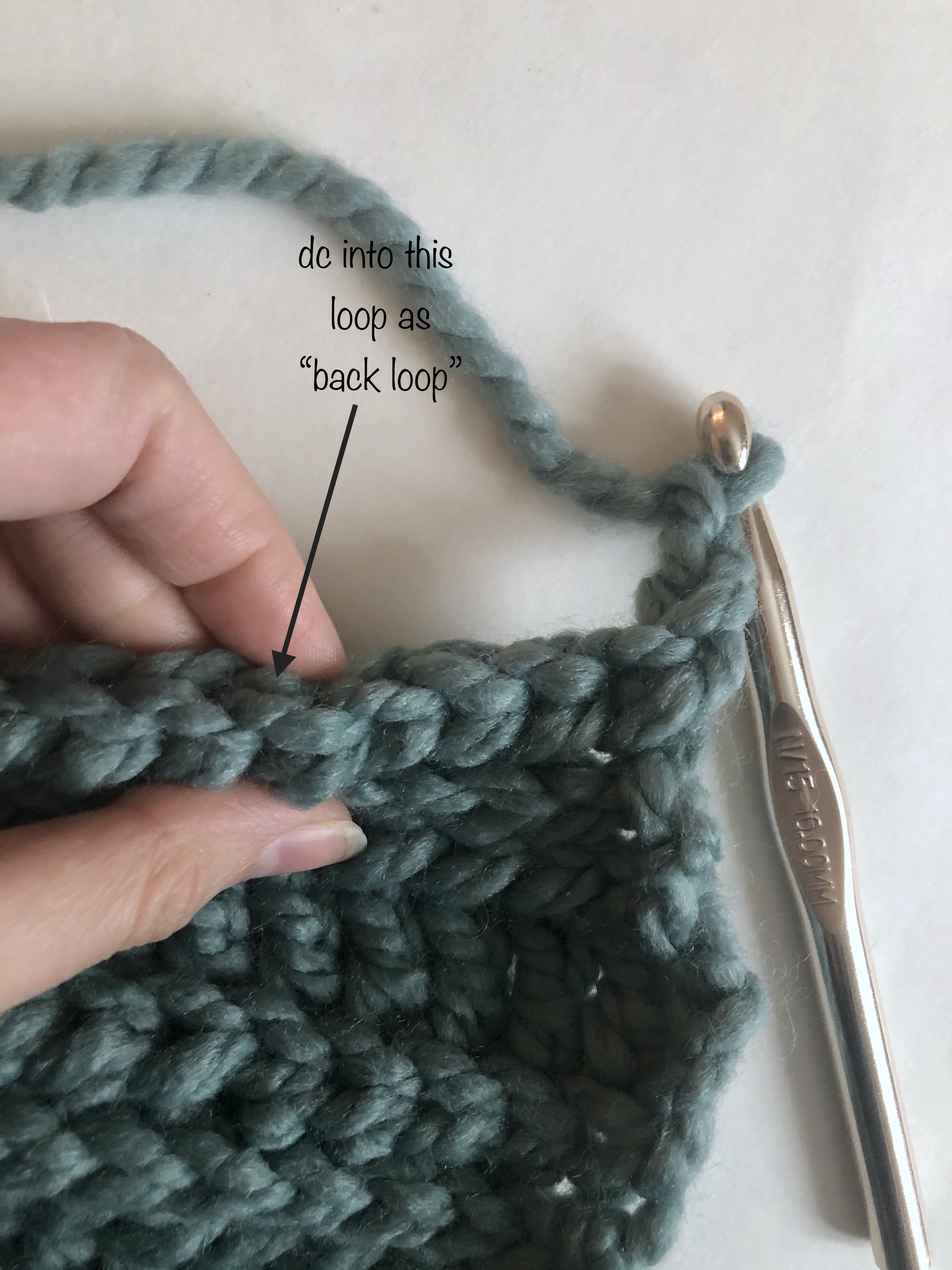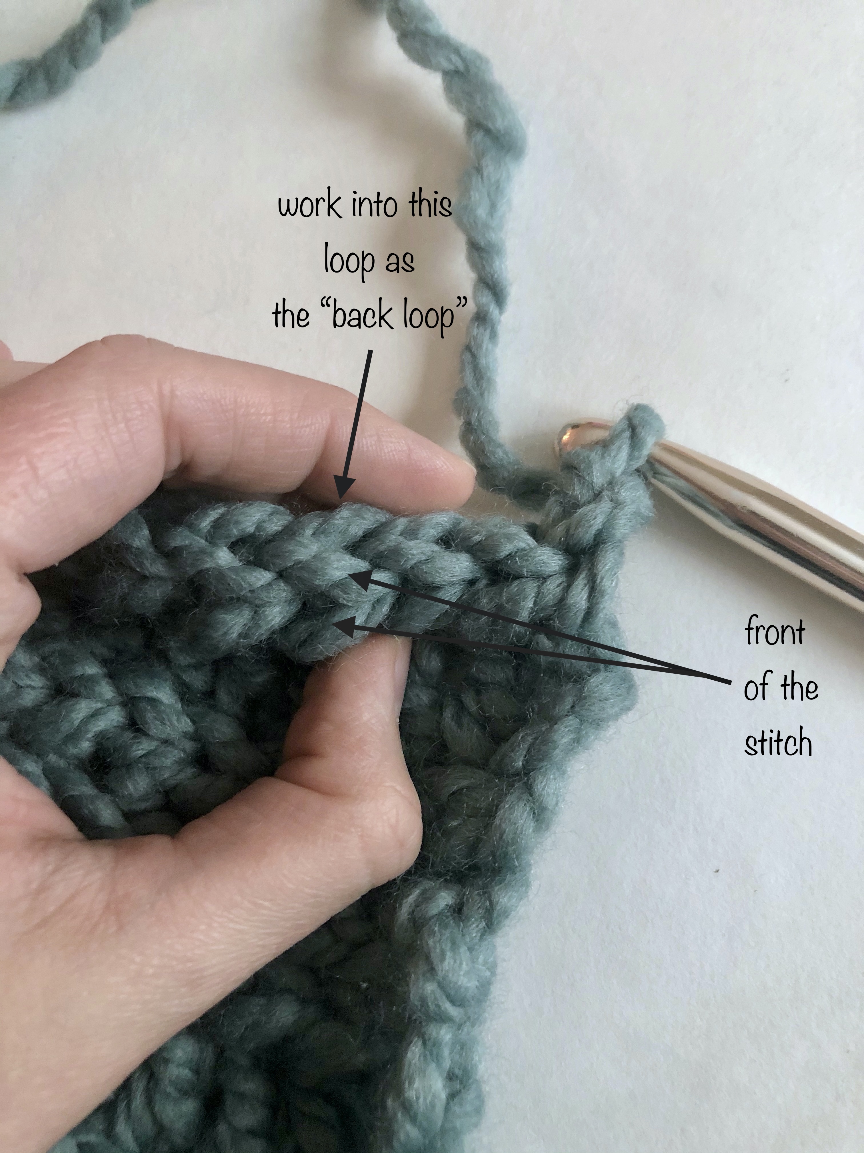 For the next row, these stitches will be worked into back loop (or the loop furthest away from you) only.