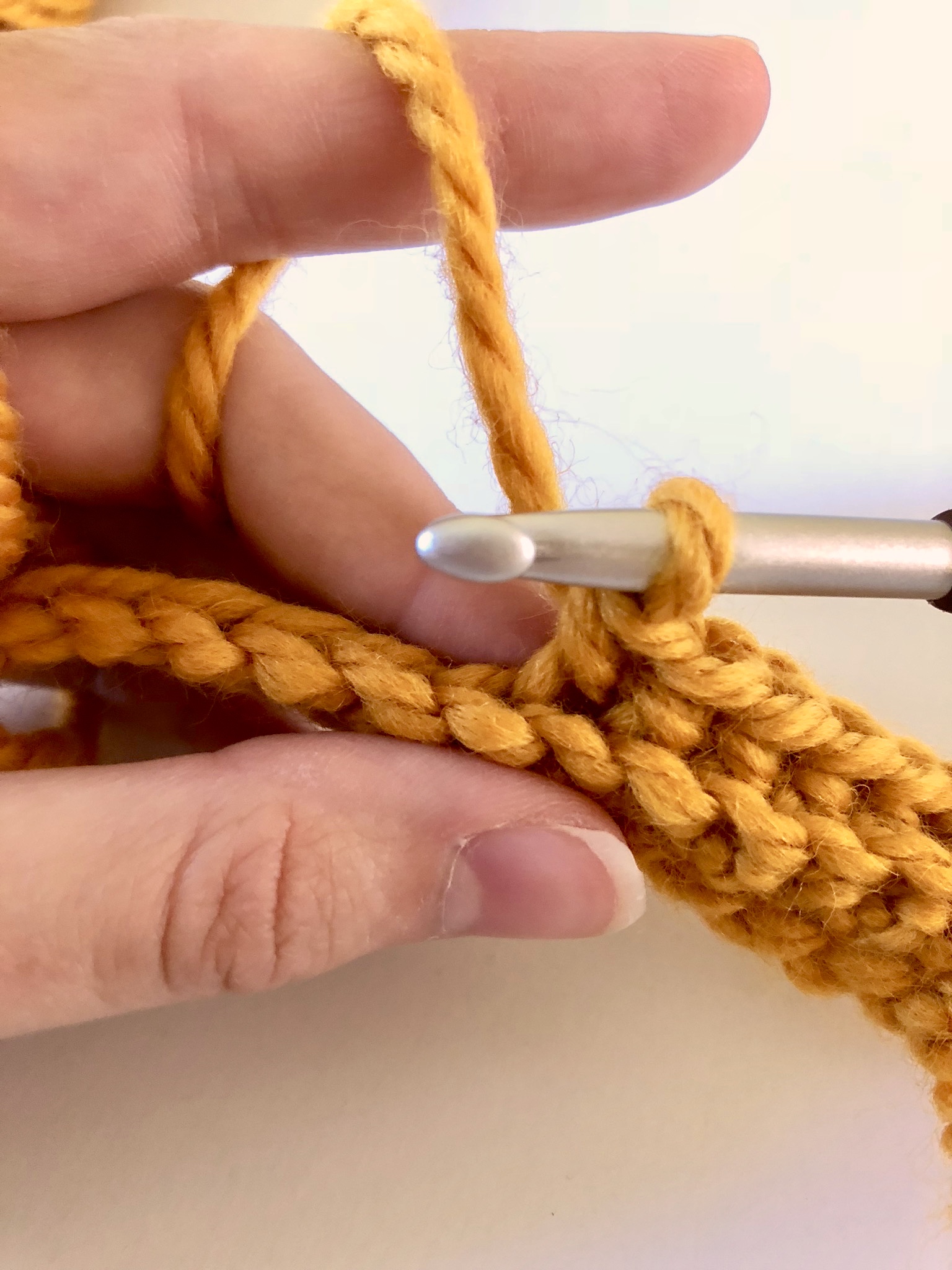 Once you have enough rows needed for your pumpkin size, you will fasten off, leaving a tail at least as long as the rows are wide.
