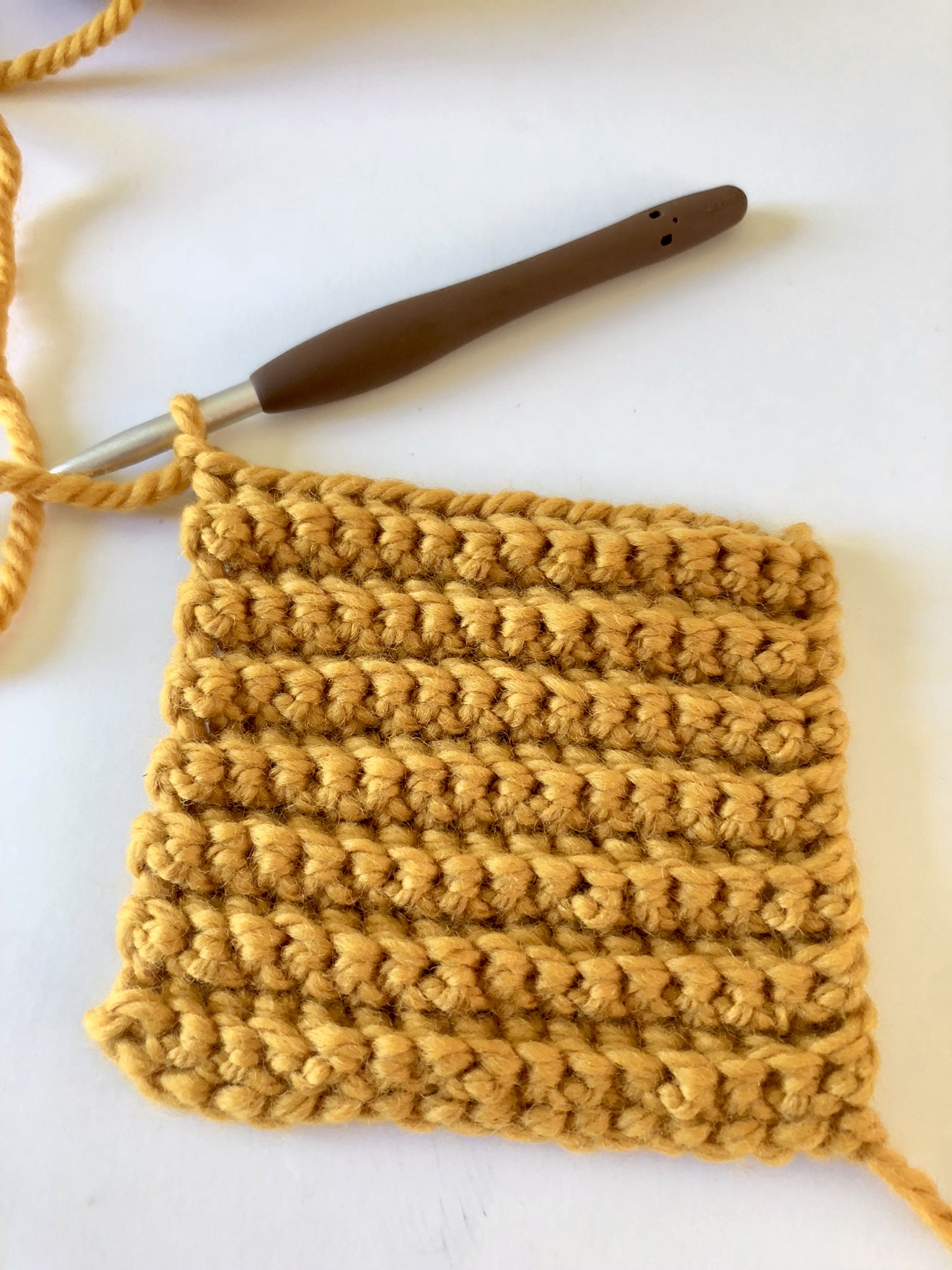 Row 1: starting in 2nd ch from hook, sc in blo across, ch 1 and turn (20)