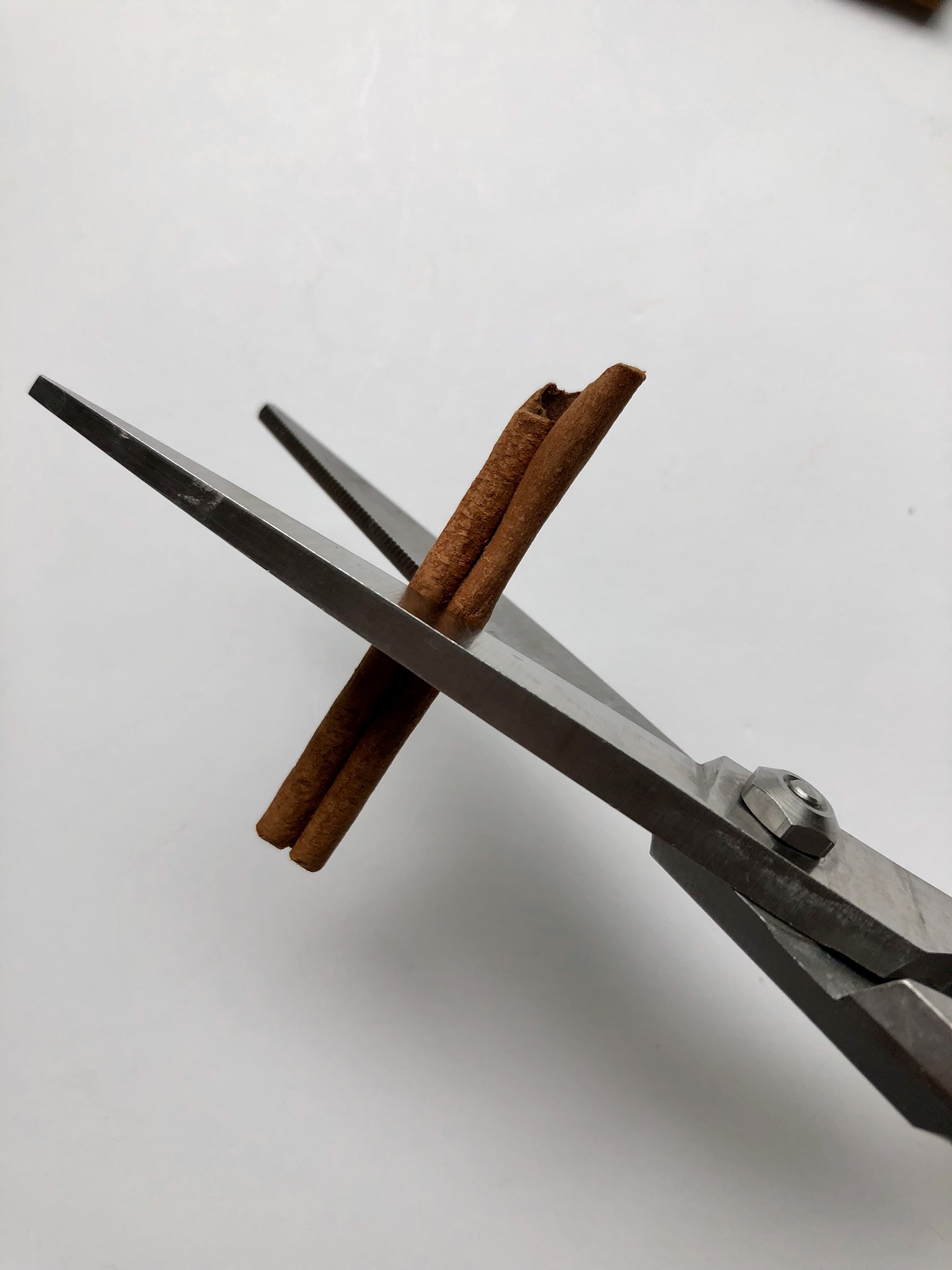 Once all the ends are tidied up, you can add the cinnamon stick. I cut the longer sticks in half using kitchen shears, but please do this carefully!