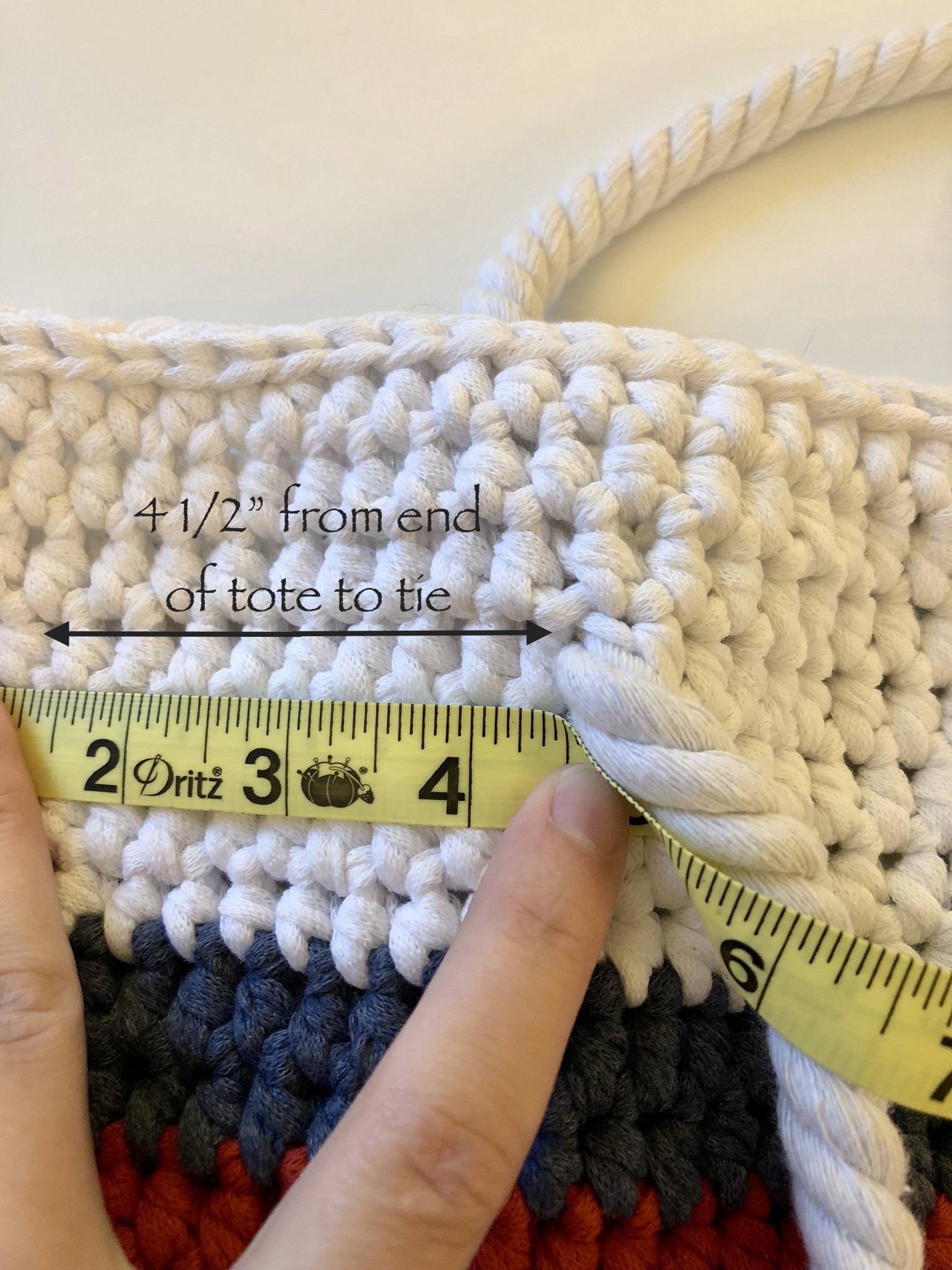 It should also be noted, that I pulled the rope through to the front of my tote so that the tie would be on the outside.