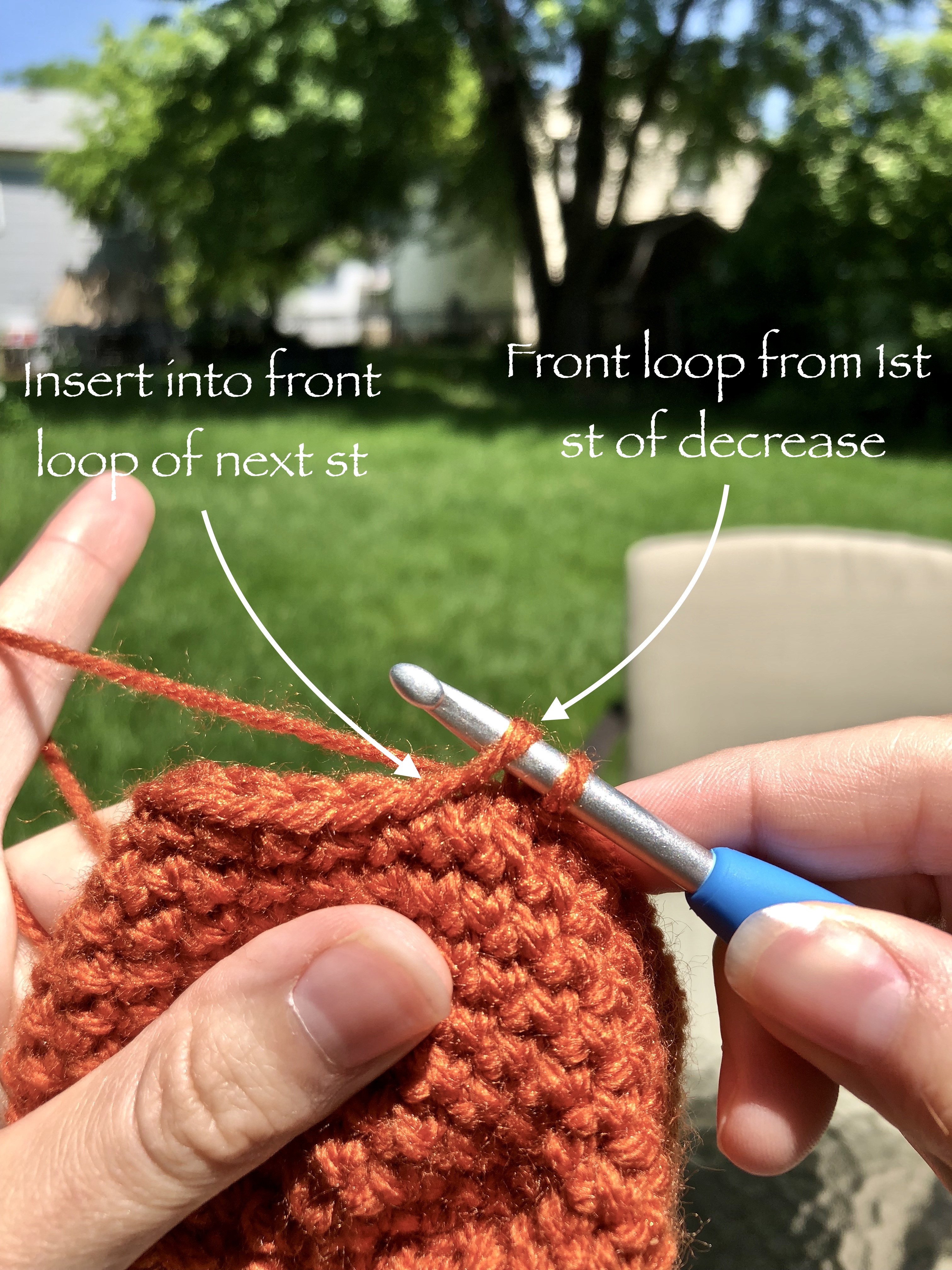 This tutorial will walk you through the differences between a single crochet decrease and an invisible decrease. This technique is intended to be used while working in the round, with single crochet stitches.