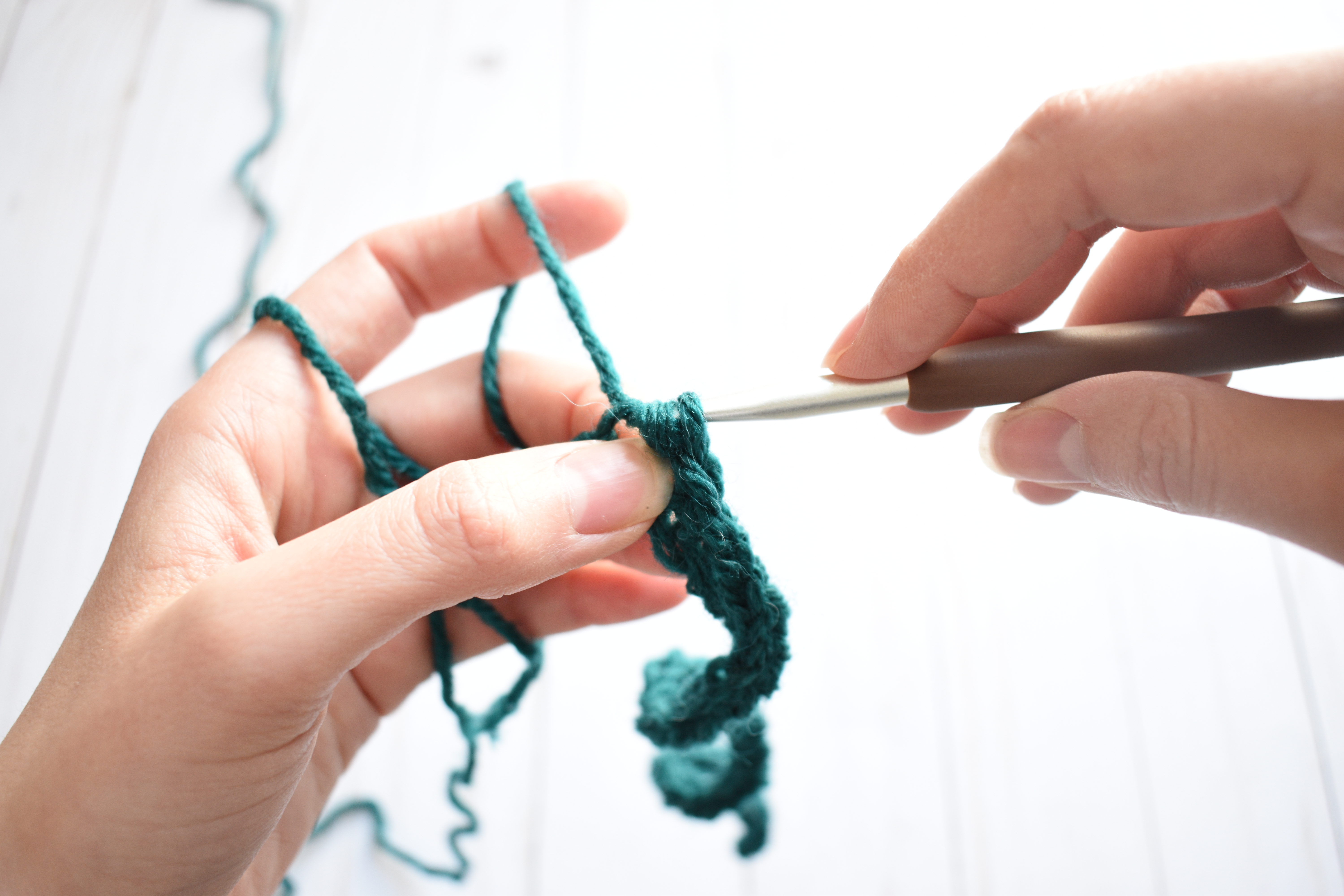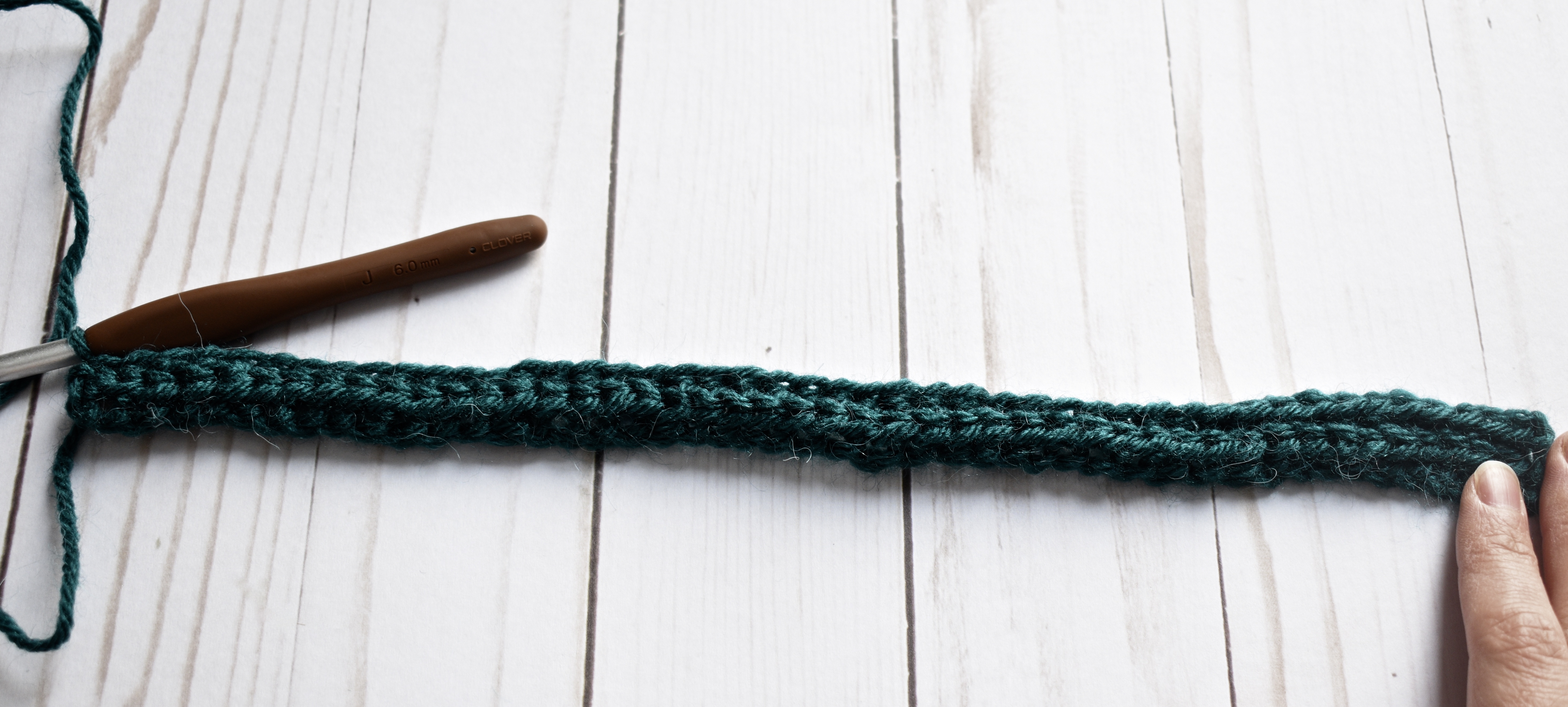 You’ll start this beanie by chaining 48, then starting the half double crochet slip stitches (or hdc ss) across.