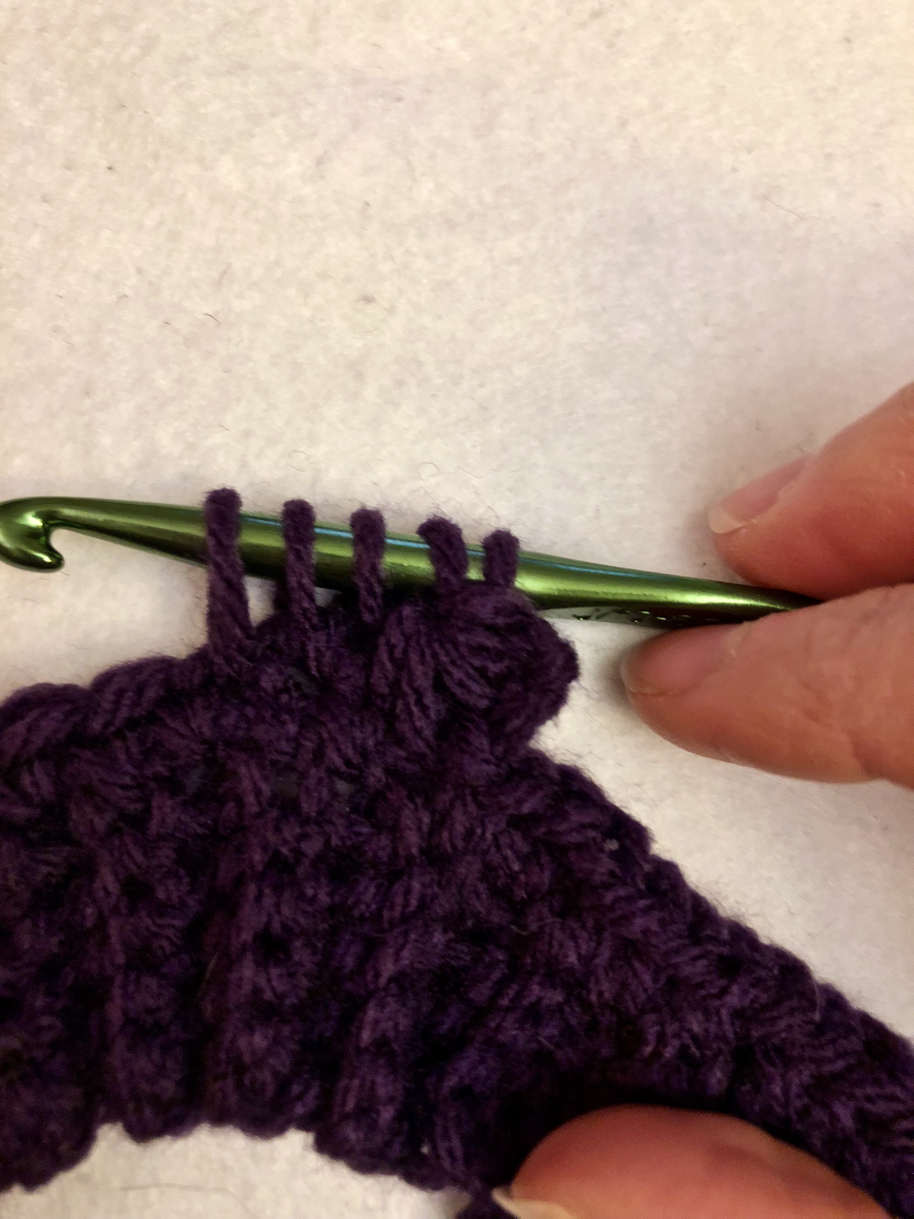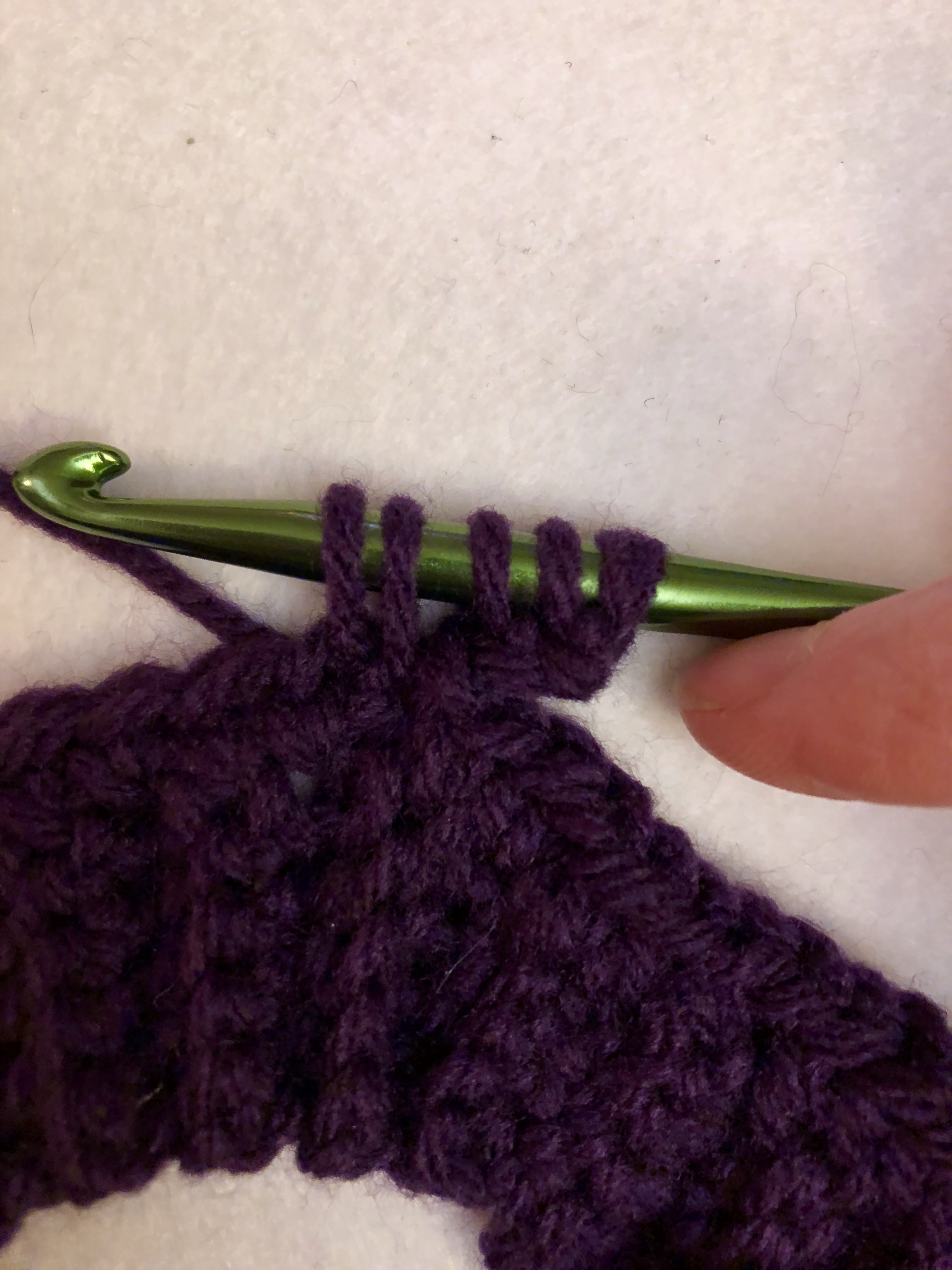 last, we will pull up 2 more loops through the next two single crochets.