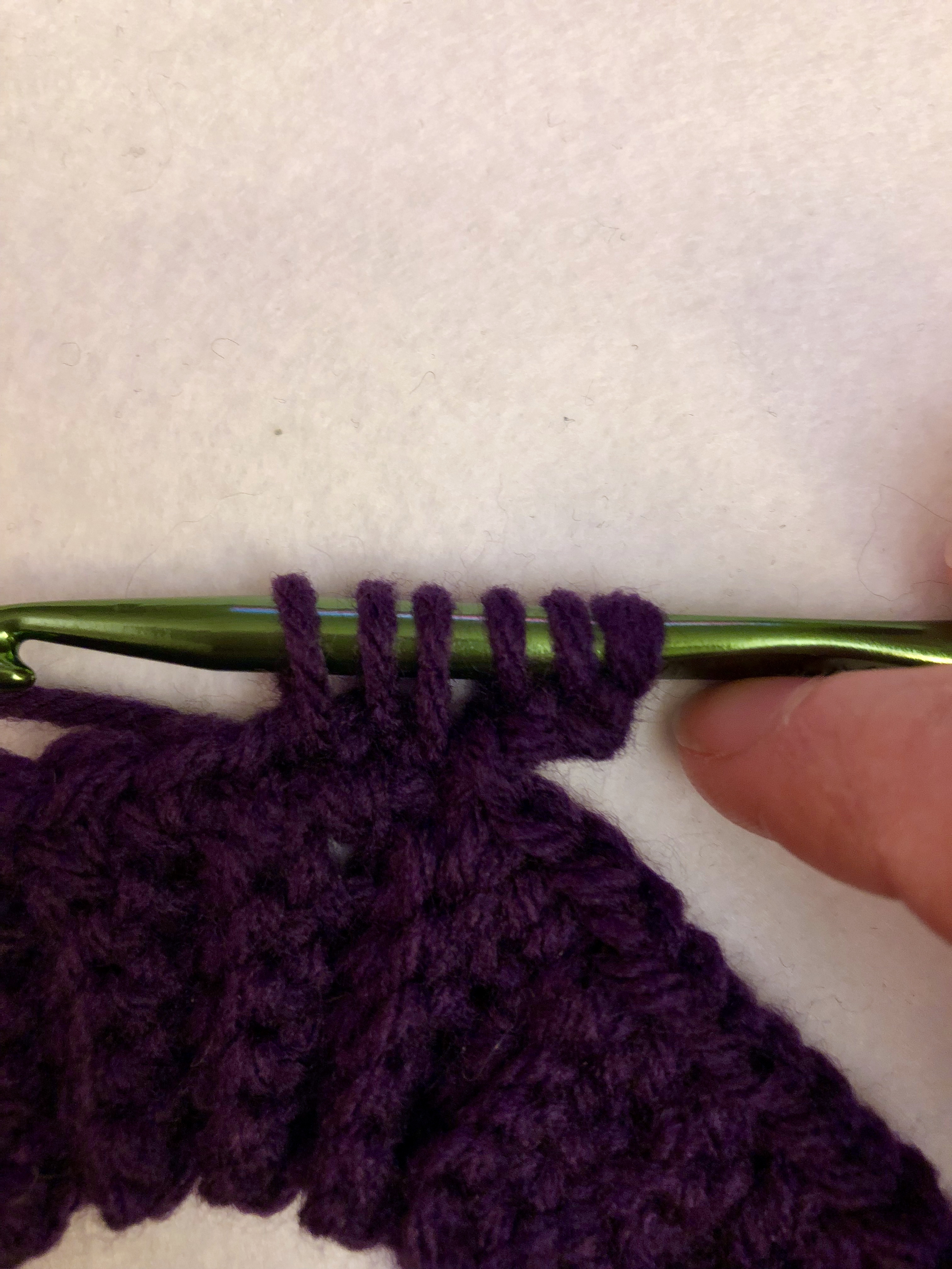 Now we work into the 3rd chain from hook and pull up another loop.