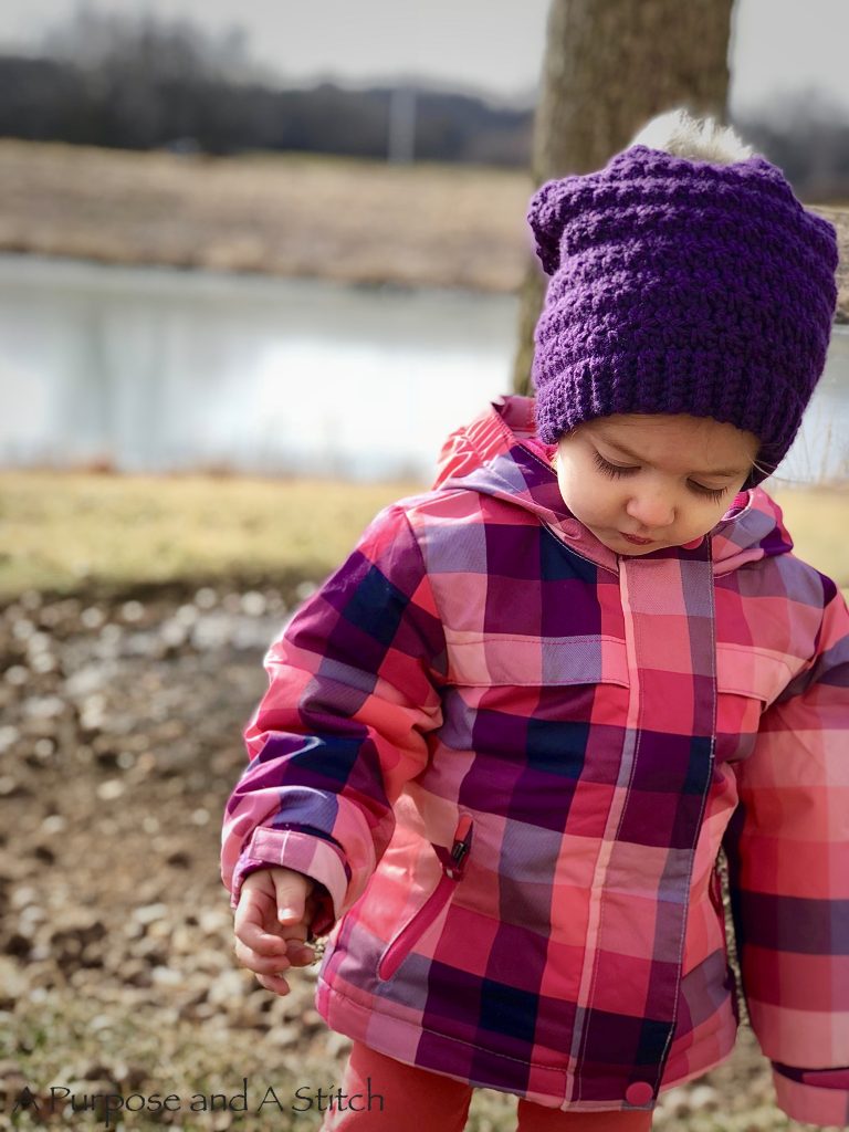 As soon as September rolled around this year, I set to work on a new design for this year’s hat. I’ve been sporting slouchy beanies as my preferred hat of choice the past few years and thought it would be adorable to make a toddler sized one for her.