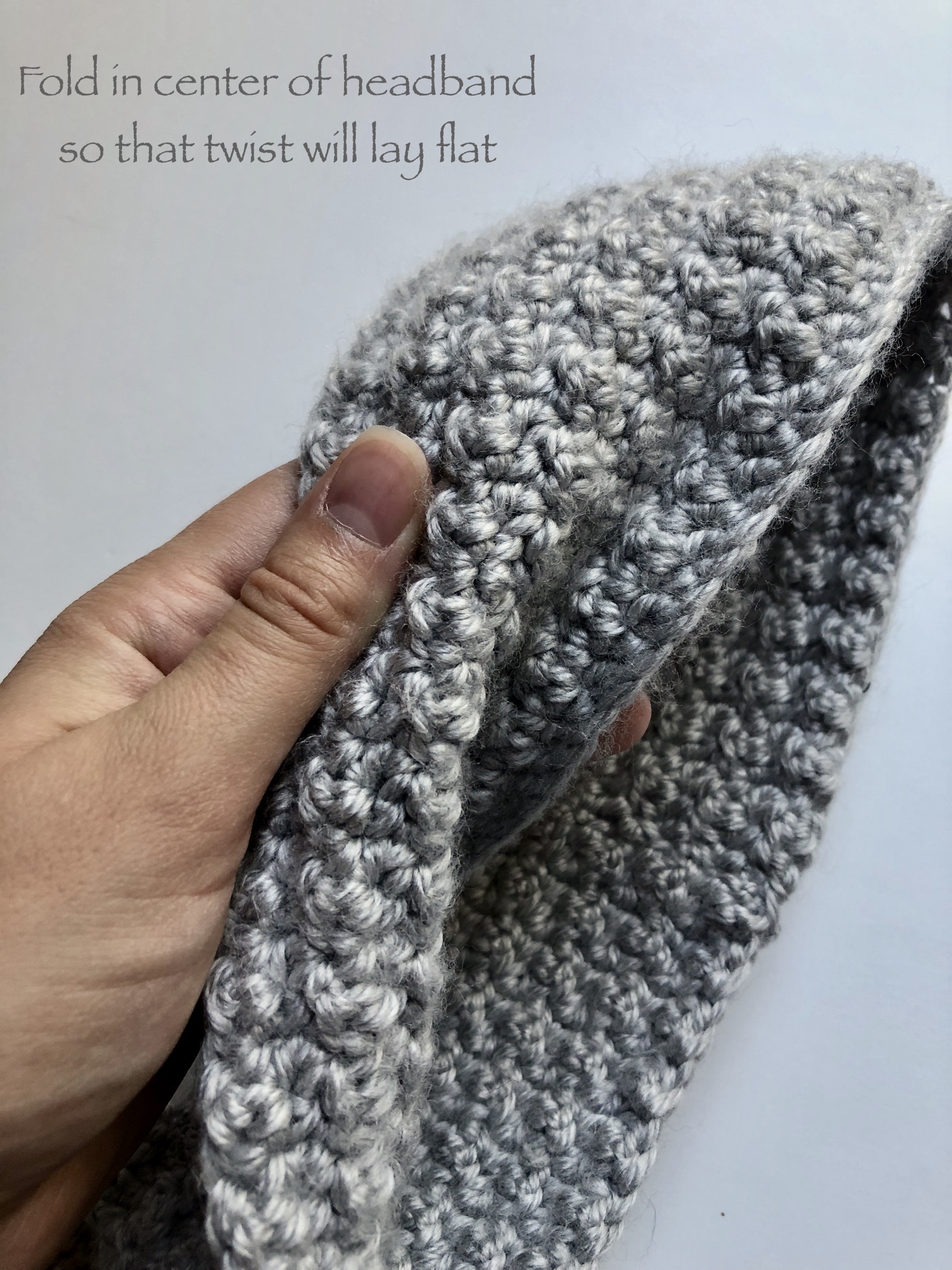 You will be working this headband across the total length needed to fit your head, working up for width. The pattern is written to measure approximately 22 inches around, which should fit most adult female heads. If you are looking to adjust the total circumference to fit a smaller or larger head, all you need to do is adjust the foundation chain by multiples of 2 to achieve the appropriate length. From there, you will work that same amount of stitches into each subsequent row and follow the assembly instructions as written below.